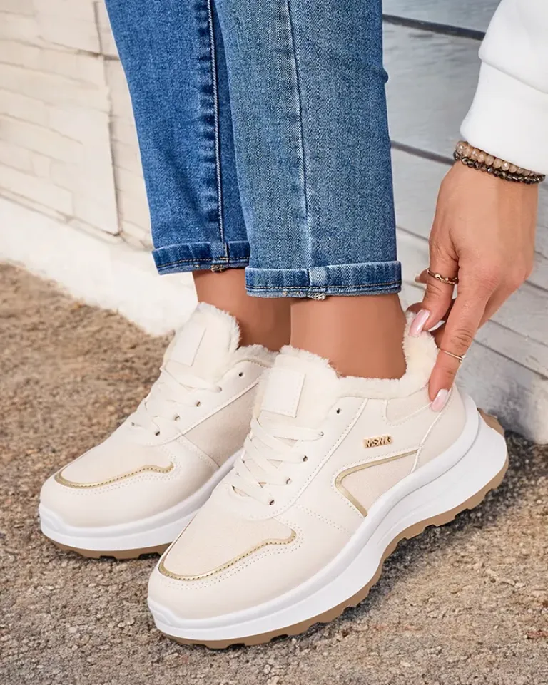 - Damskie ocieplane buty sportowe typu sneakersy na grubszej podeszwie. Sznurowana cholewka wykonana z zamszowej skóry ekologicznej z elementami eko skóry. W środku miękkie futerko. Super dodatek do Twoich zimowych outfitów w stylu casual!
