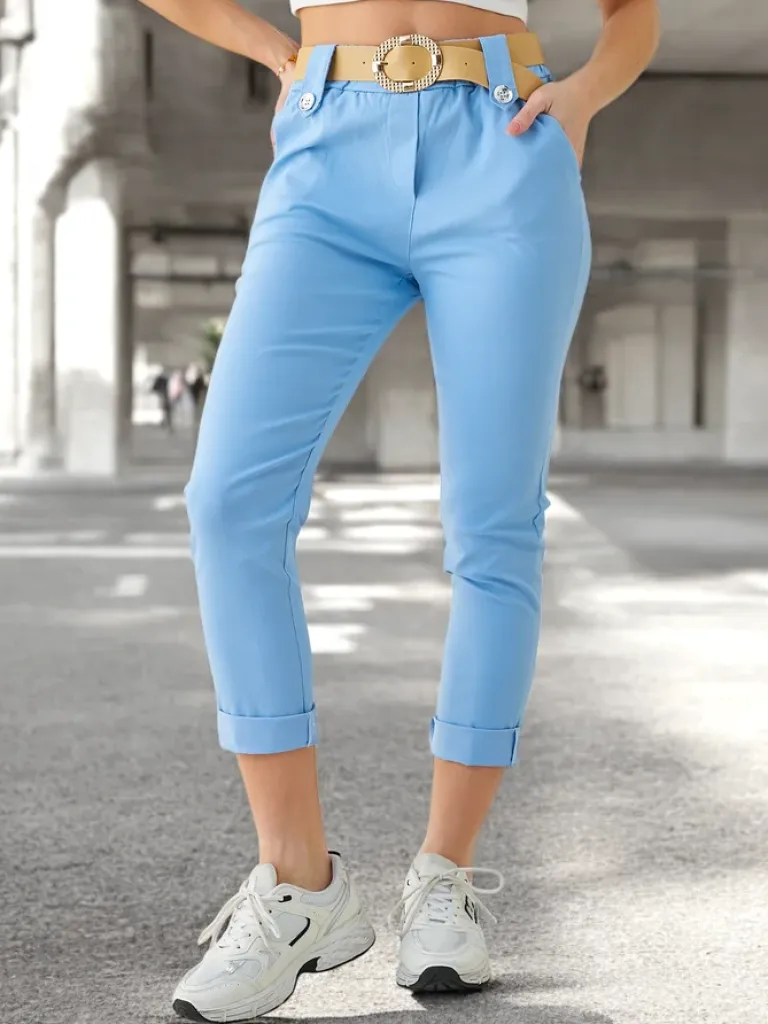 - Fenomenalne zwężane spodnie wykonane z lekkiej tkaniny, model posiada gumę w pasie i pasek. Dodatkowo 2 kieszenie. Hit tego sezonu! UWAGA: Dokładność pomiaru (+/-) 1 cm.