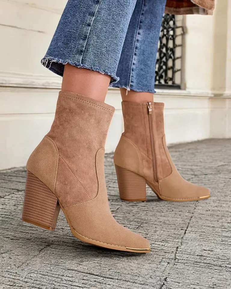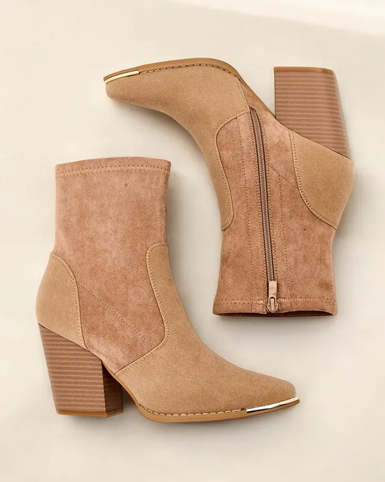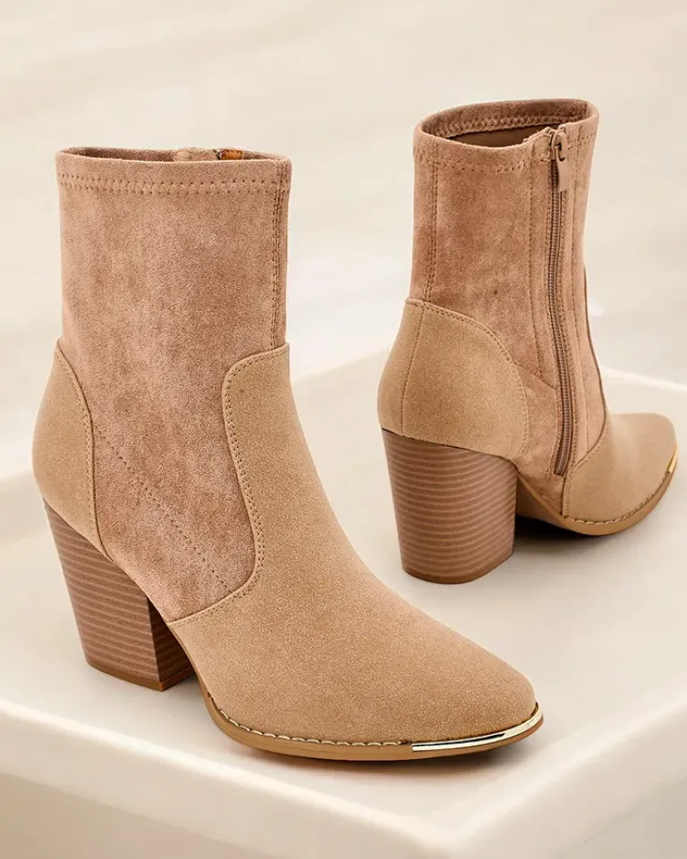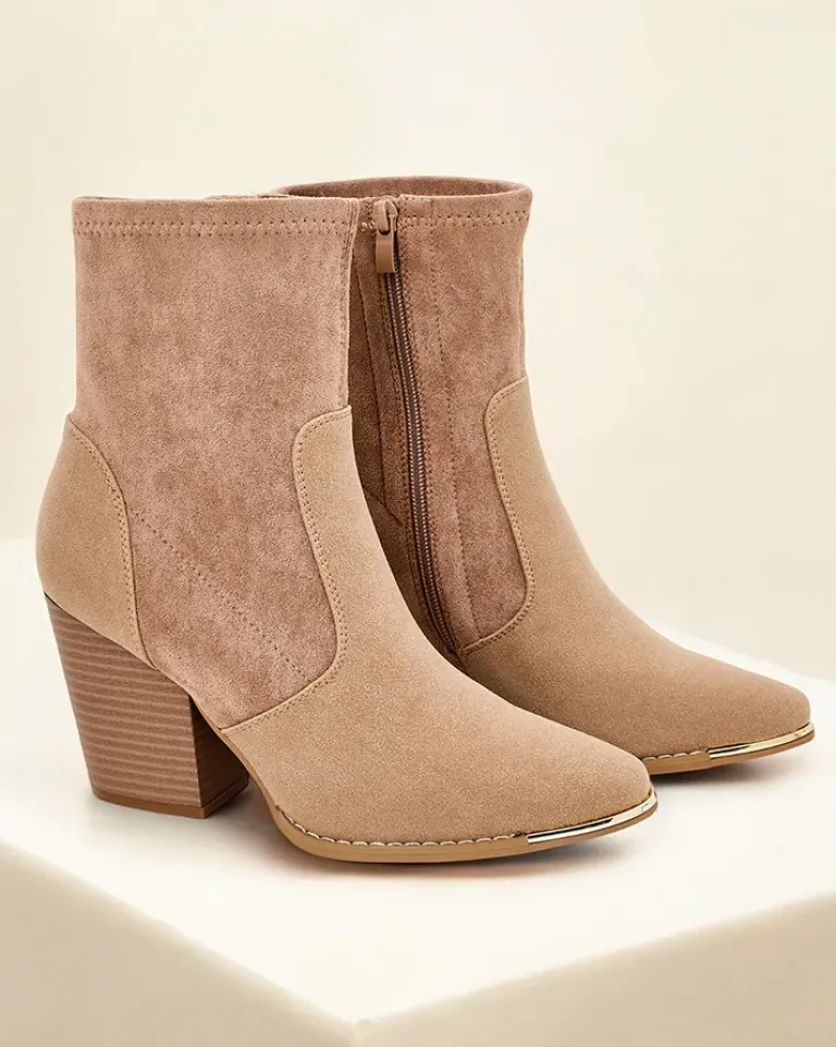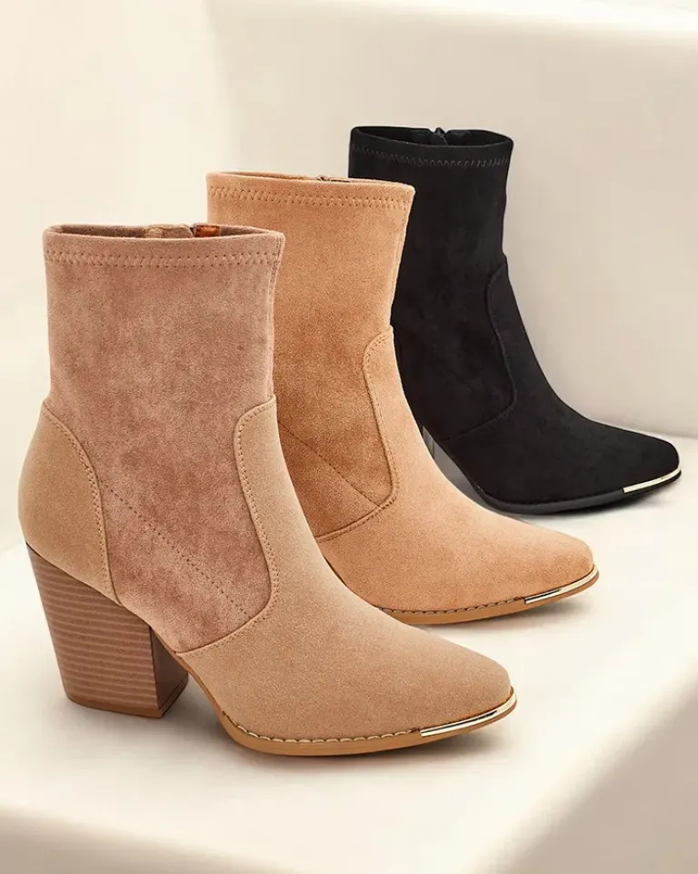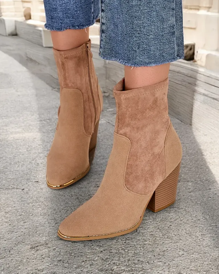 - Stylowe damskie botki to idealne rozwiązanie na chłodniejsze dni. Cholewka jest zapinana na suwak, a w środku wypełnienie tkaninowe oraz futerkowa wkładka. Model na słupku, z noskiem w szpic. Super dodatek do Twoich casualowych outfitów!