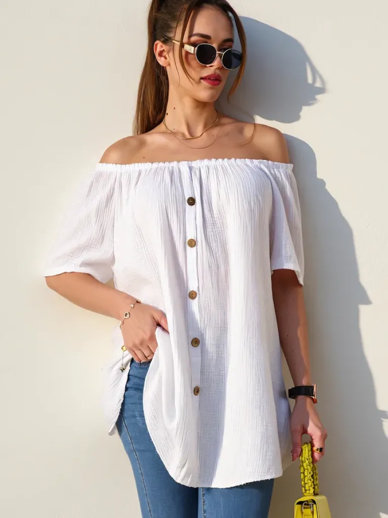 Hot Bawełniana bluzka damska a’la hiszpanka z ozdobnymi guzikami Bluzki / Koszule / Koszulki