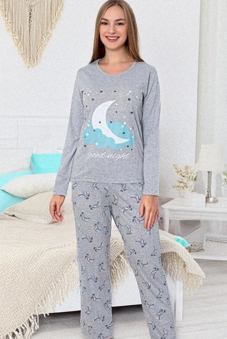 - Piżama damska 2-częściowa z długim rękawem i długimi nogawkami, wykonana z materiału bawełnianego. Model zdobiony printem. Idealna na domowe wieczory! UWAGA: Dokładność pomiaru (+/-) 1 cm.