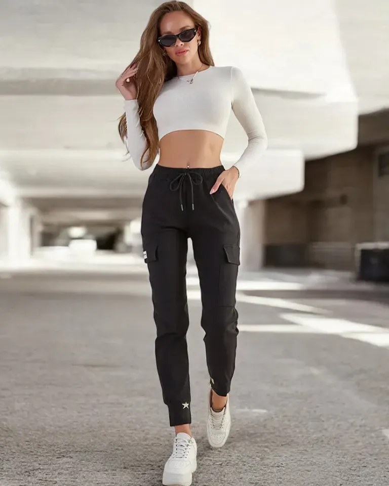 Hot Bawełniane damskie materiałowe spodnie typu bojówki Spodnie Cargo|Spodnie Materiałowe