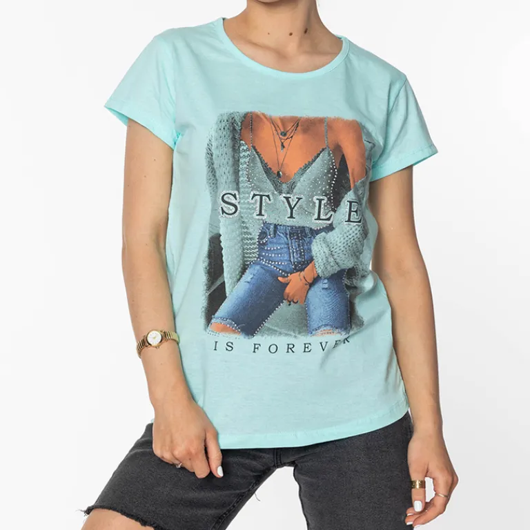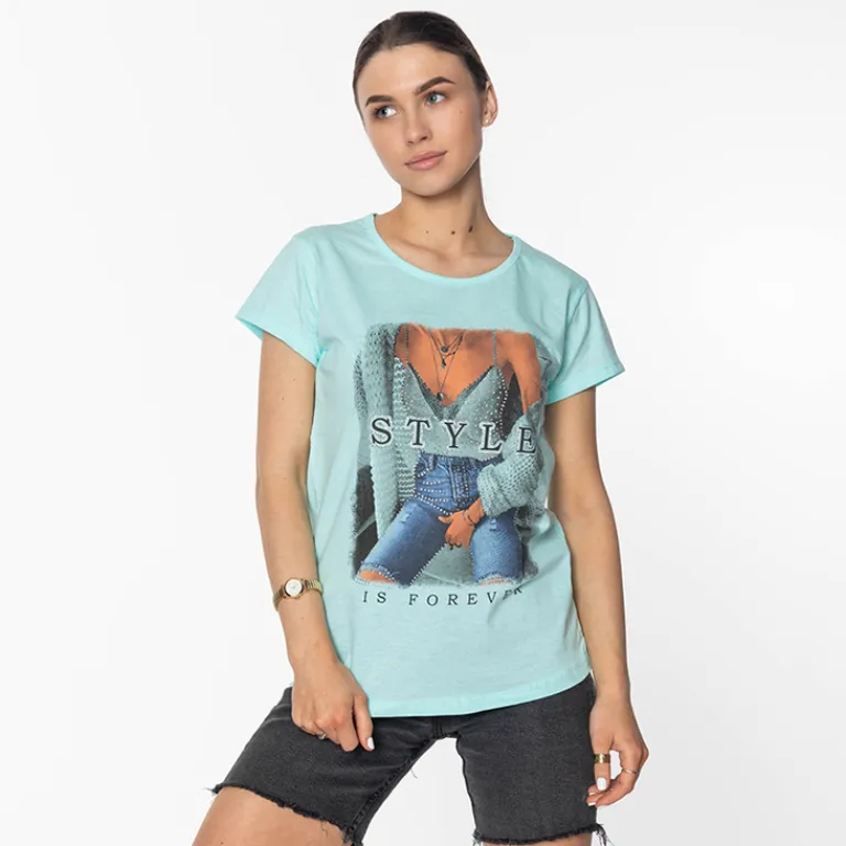 Hot Damska miętowa koszulka z nadrukiem Bluzki / Koszule / Koszulki