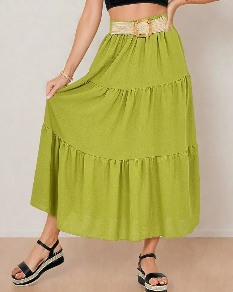 - Ponadczasowa damska spódnica o długości midi. Model posiada elastyczną gumę w pasie, która idealnie podkreśla talię. Dodatkowo pleciony pasek w zestawie. Ta spódnica to świetny akcent do Twojego codziennego looku!