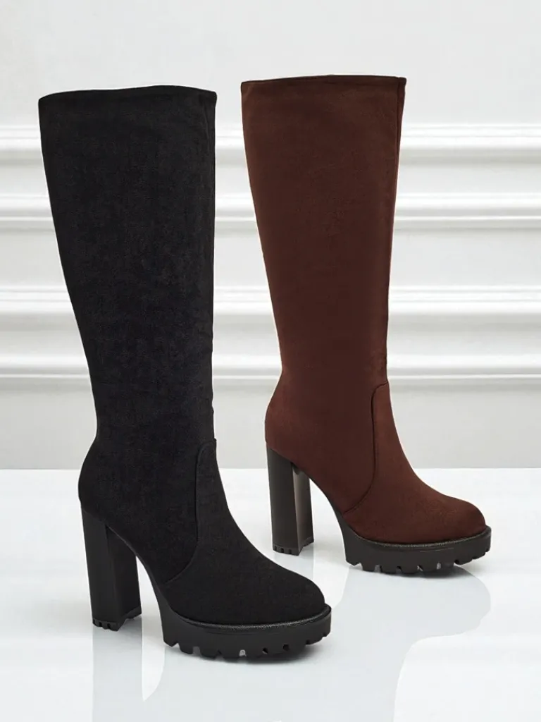 - Stylowe damskie kozaki do kolana na słupku. Cholewka wykonana jest z eko skóry zamszowej, w środku ocieplenie w formie futerka. Model zapinany na suwak. Idealne do codziennych jesiennych outfitów!