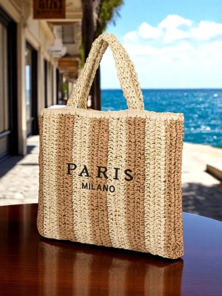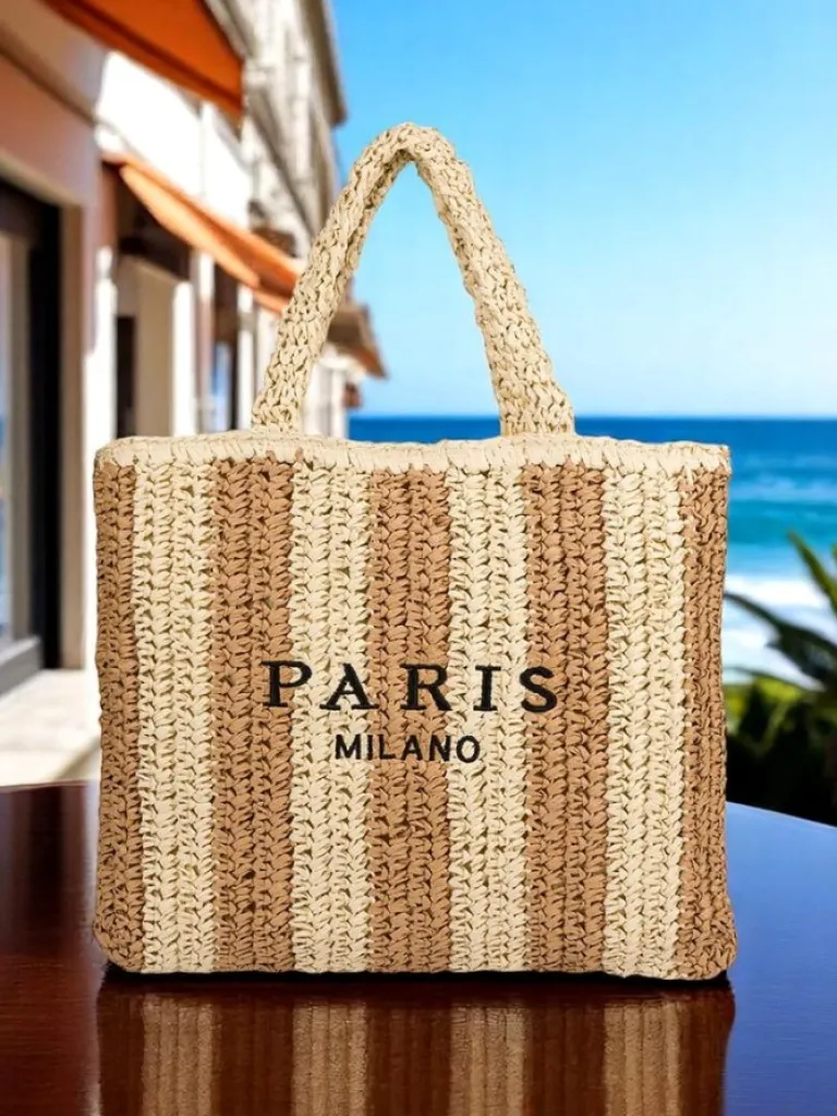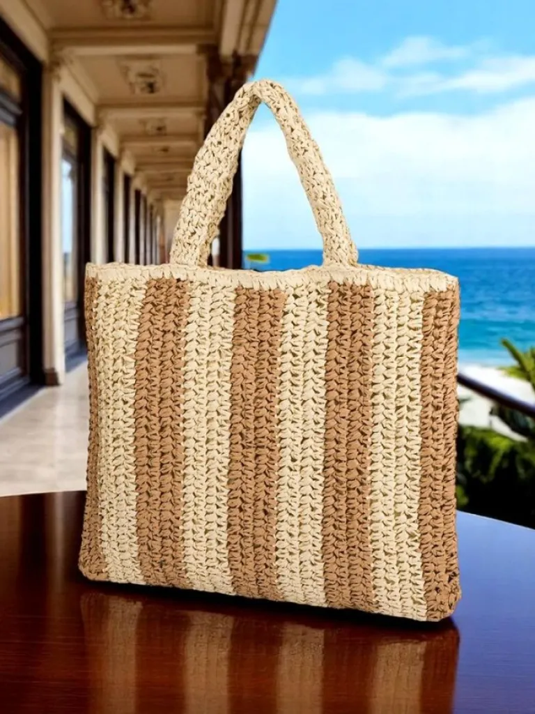 Hot Duża słomiana torebka damska Straw Stripe Damskie Wiklinowe I Słomiane