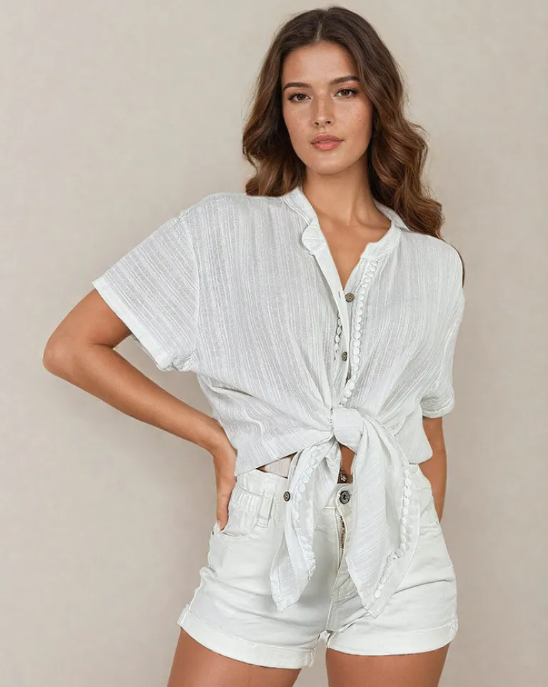 - Rewelacyjna damska koszula z krótkimi rękawami. Model z kołnierzykiem, jest zapinany na guziki. Must have w szafie każdej kobiety!