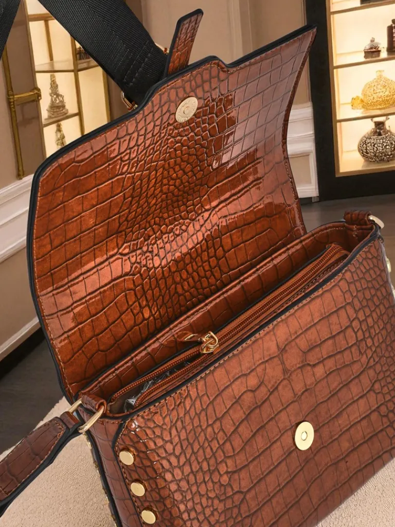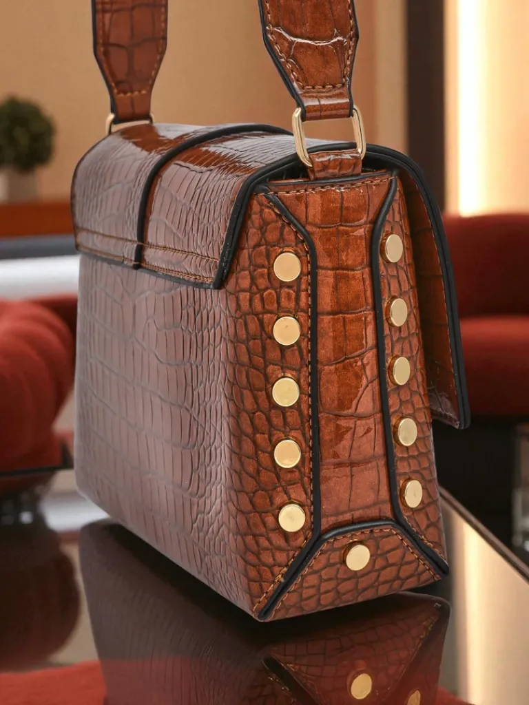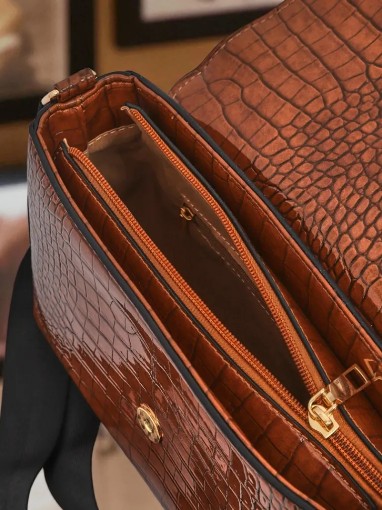 - Kwadratowa torebka z lakierowanej eko skóry z tłoczeniem. 1 komora z przegrodą, 4 kieszonki, zamek oraz odpinany, regulowany pasek. Styl i funkcjonalność w perfekcyjnym wydaniu.
