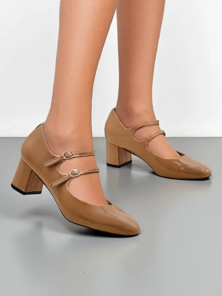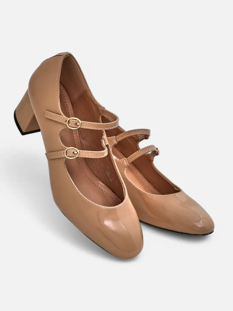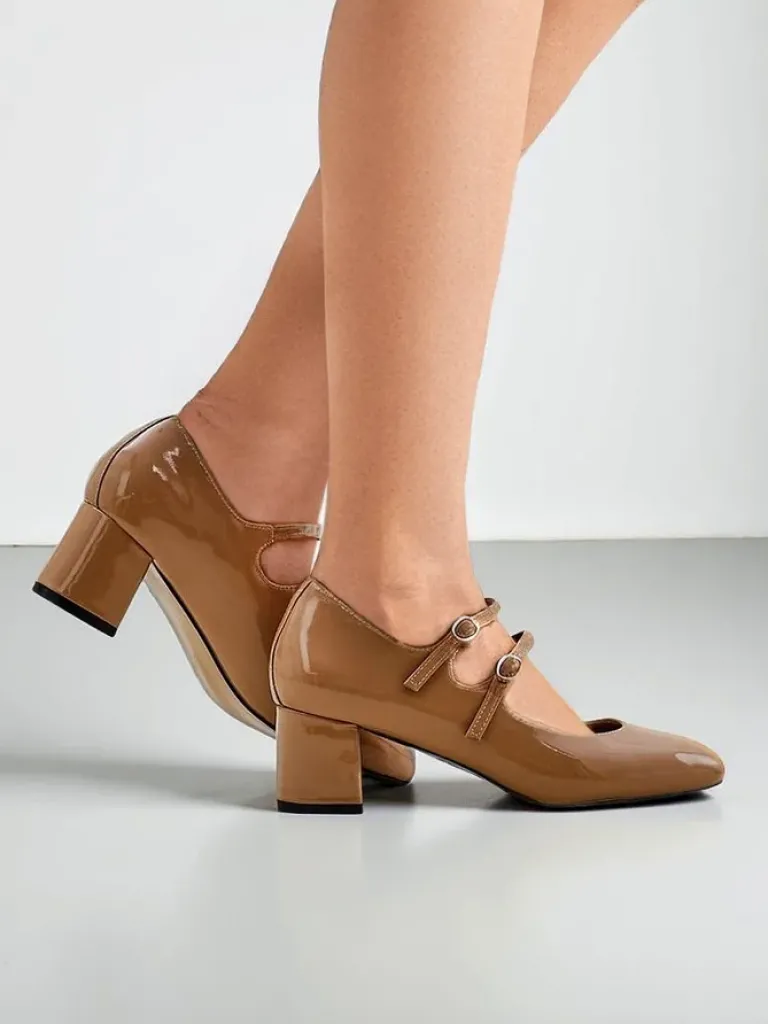 - Eleganckie damskie czółenka na słupku, wykonane ze skóry ekologicznej lakierowanej. Środek buta jest wyłożony skórą ekologiczną, a nosek zaokrąglony. Model zapinany na sprzączkę. Klasa i szyk mody!
