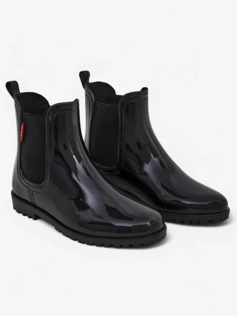 - Klasyczne damskie kalosze wykonane z tworzywa gumowego z lakierowanym wykończeniem. Wkładka to materiał tkaninowy. Obuwie idealne na jesienne deszczowe dni!