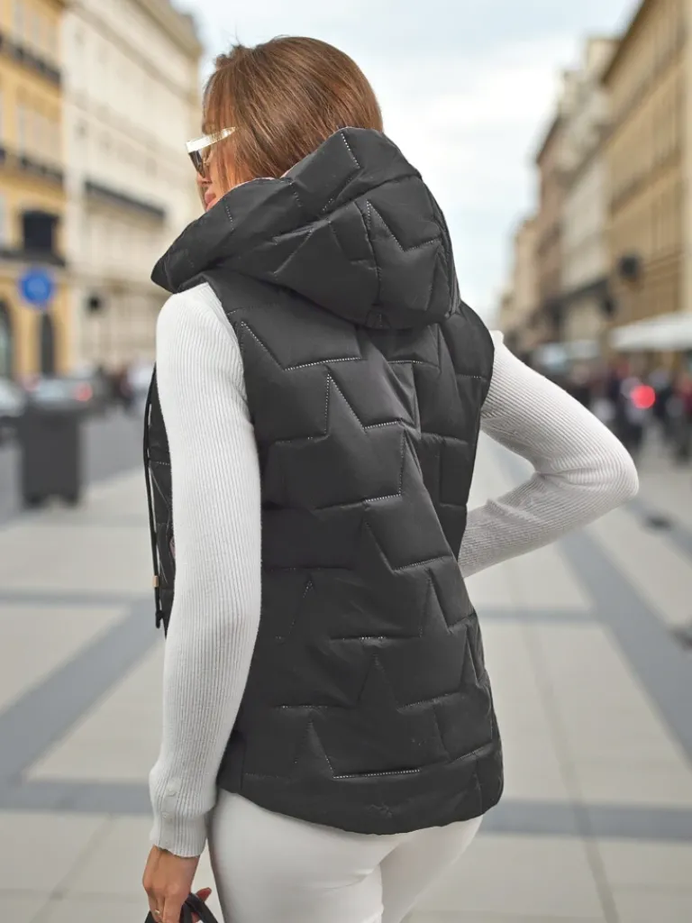 - Rewelacyjna pikowana kamizelka damska. Bezrękawnik zapinany suwakiem, posiada kaptur i 2 kieszenie. Produkt z wypełnieniem syntetycznym. Świetne dopełnienie jesiennych stylizacji! UWAGA: Dokładność pomiaru (+/-) 1 cm.