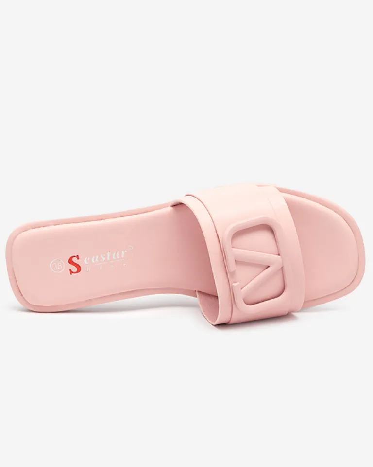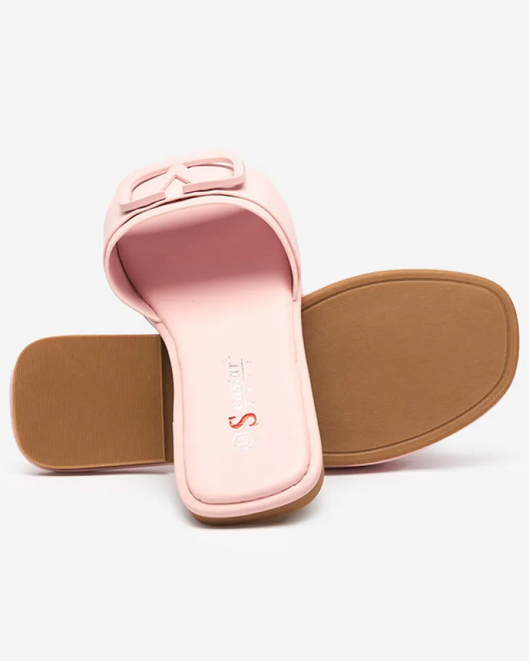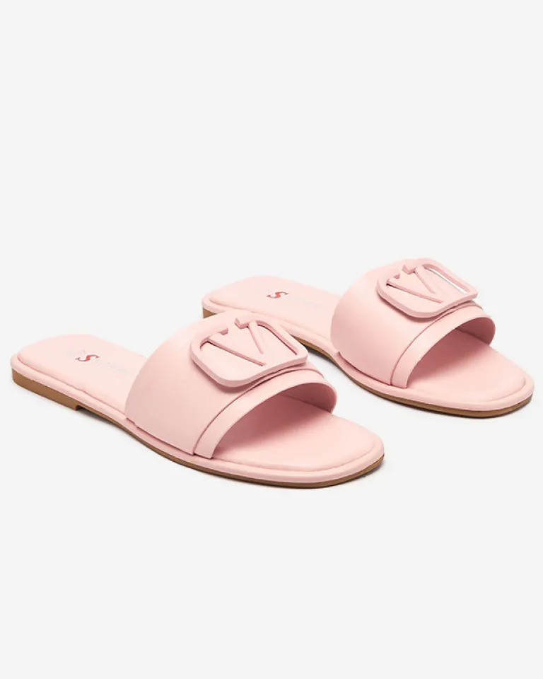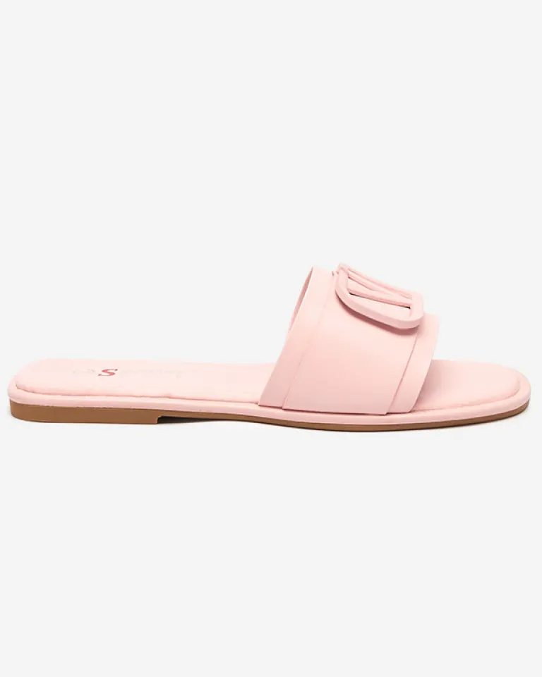 - Stylowe damskie klapki na płaskim obcasie, para wykonana z eko skóry. Cholewkę zdobi klamerka w kolorze obuwia. Super dodatek do Twoich casualowych outfitów! UWAGA: model może posiadać delikatne pęknięcia na wkładce.