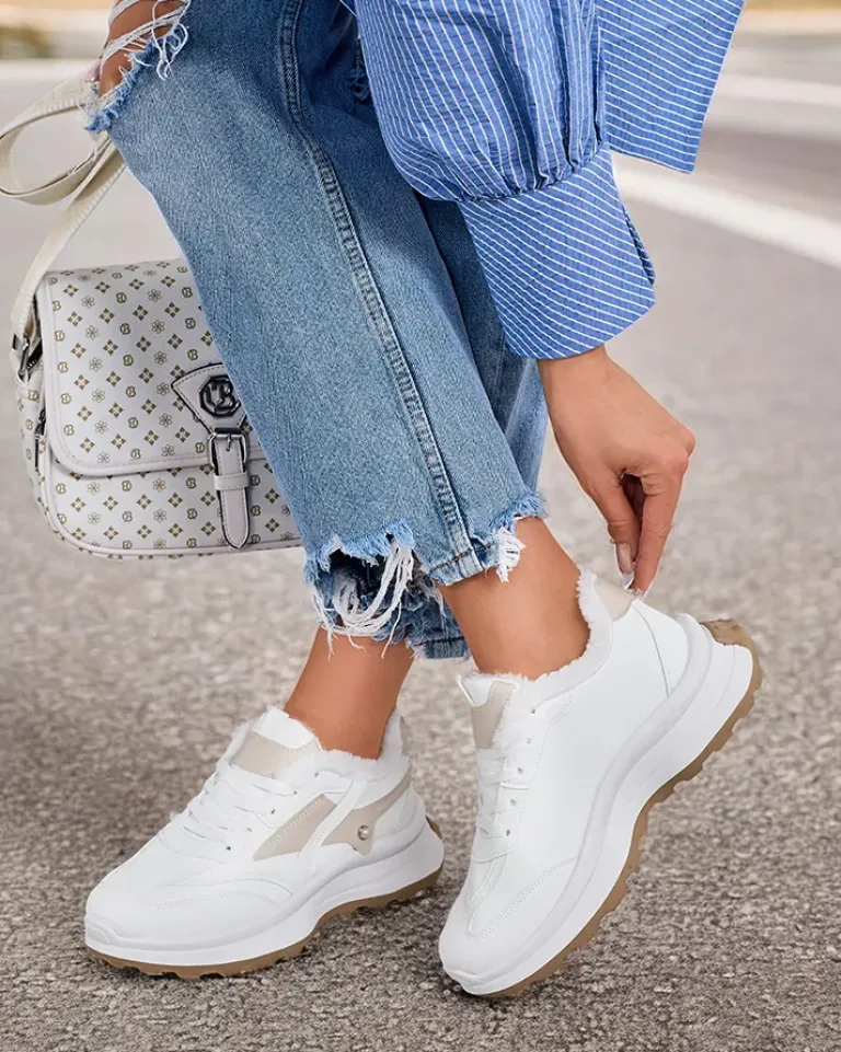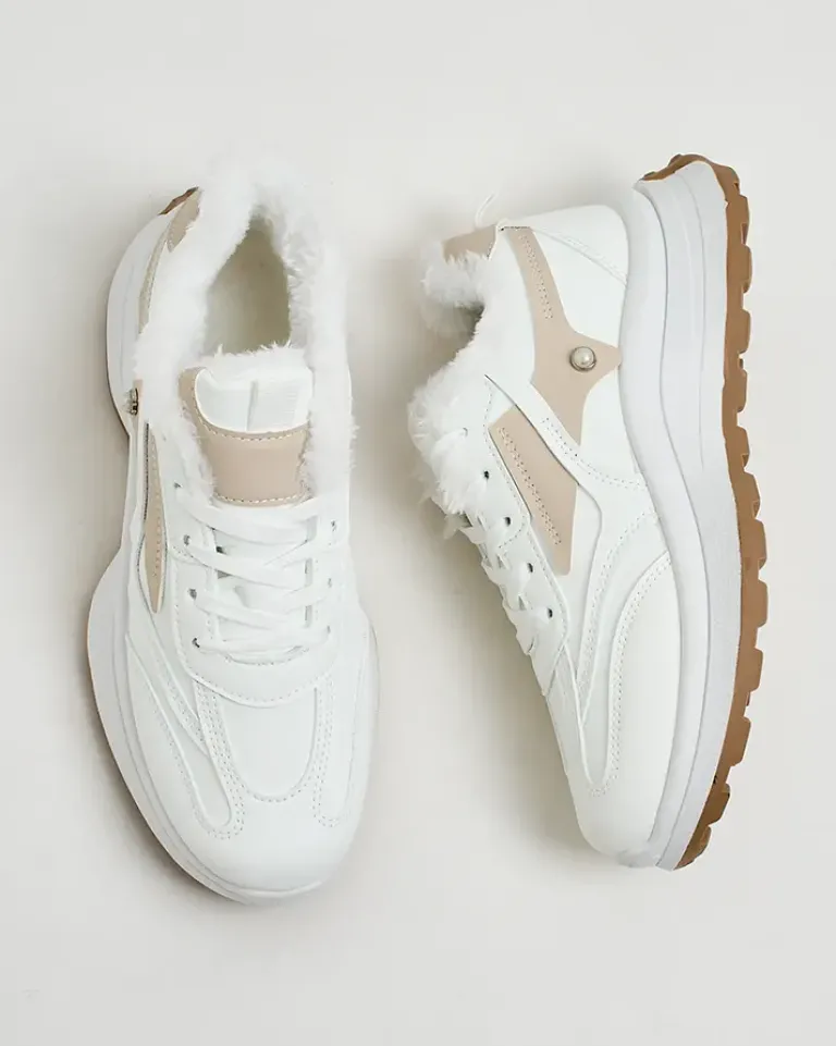 - Damskie ocieplane buty sportowe typu sneakersy na grubszej podeszwie. Sznurowana cholewka wykonana z zamszowej skóry ekologicznej z elementami eko skóry. W środku miękkie futerko. Super dodatek do Twoich zimowych outfitów w stylu casual!