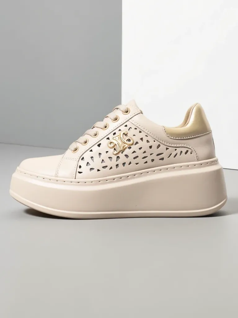 - Ażurowe eko skórzane sneakersy damskie na platformie – perfekcyjne połączenie stylu i komfortu. Model sznurowany, posiada wkładkę ze skóry naturalnej. Idealne dla aktywnych osób!