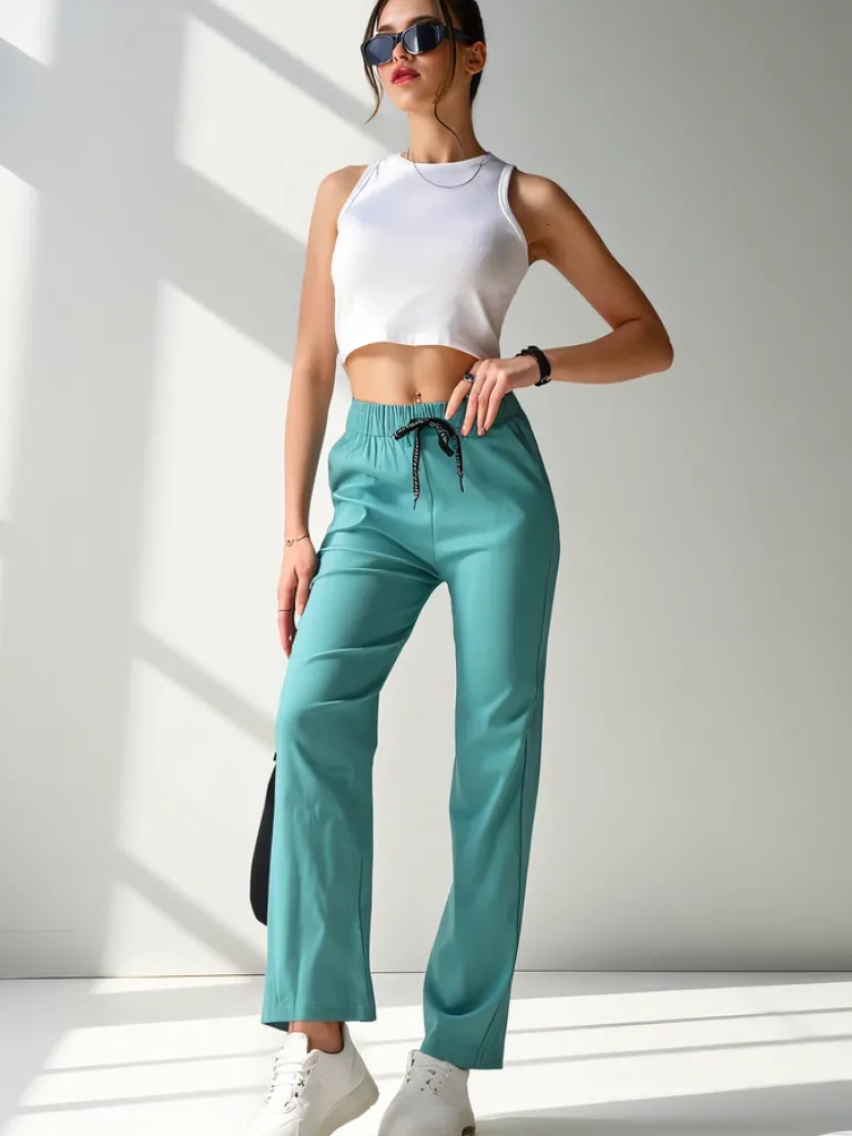 - Szerokie spodnie wykonane z lekkiej tkaniny, model posiada gumę w pasie oraz dwie kieszenie. Wygodne i komfortowe! UWAGA: Dokładność pomiaru (+/-) 1 cm.
