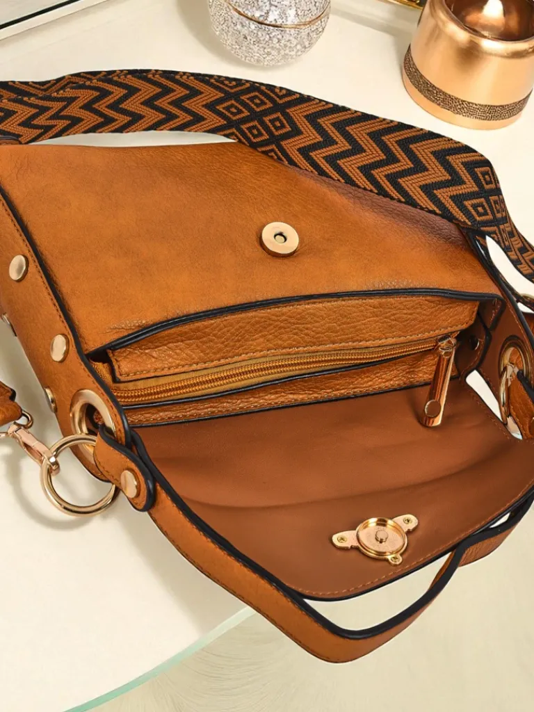 - Stylowa, mała torebka z eko skóry z 1 komorą na zamek i magnes. W zestawie odpinany, regulowany pasek, dopasowana kosmetyczka i portmonetka – idealna na co dzień i specjalne okazje.