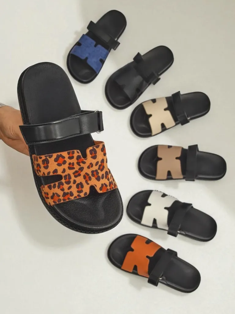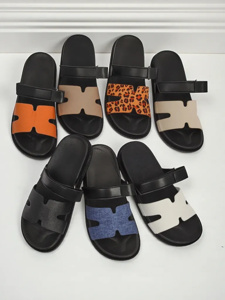 - Eko skórzane klapki FlexiComfi z regulacją na rzep zapewniają idealne dopasowanie i wygodę na co dzień. Lekkie, praktyczne i stylowe – doskonałe do letnich stylizacji i codziennego użytku.