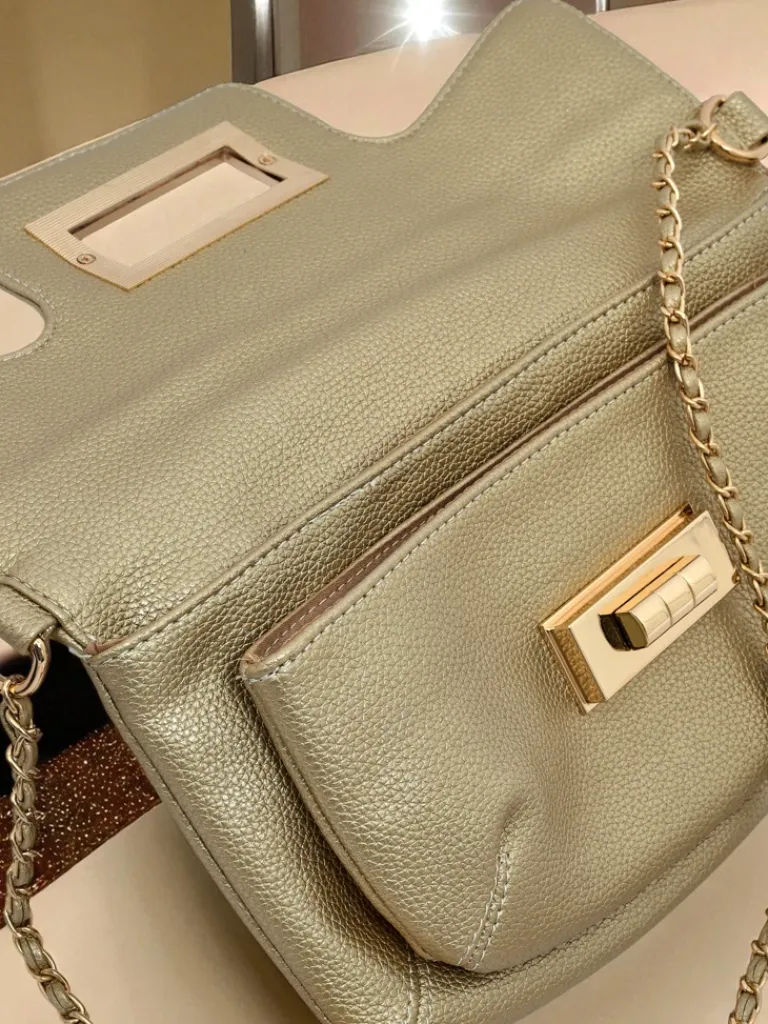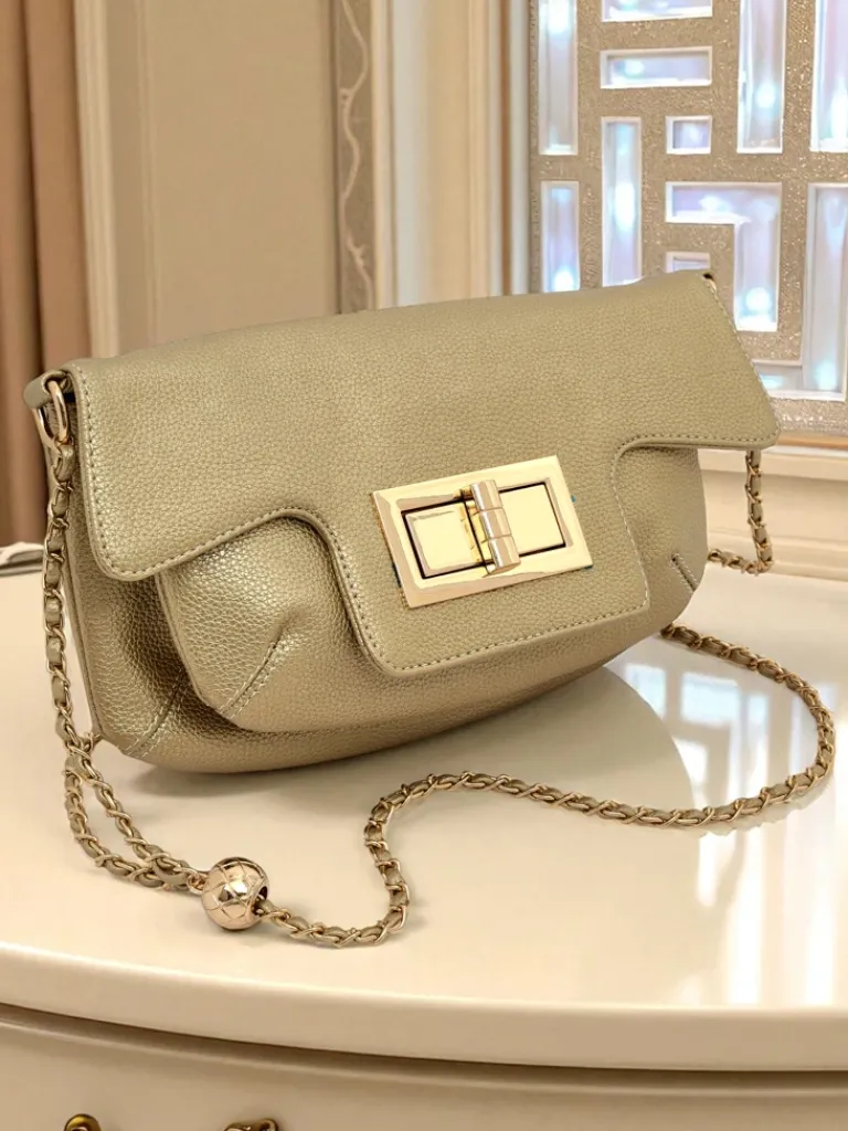 - Elegancka mała torebka damska kopertowa z eko skóry. Model z zapięciem na zamek i magnes, posiada 1 komorę. Dodatkowo regulowany pasek z łańcuszka. Idealna na oficjalne wyjścia!