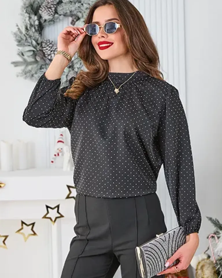 - Rewelacyjna damska koszula z cyrkoniami. Model posiada długie rękawami oraz okrągły dekolt. Must have w szafie każdej kobiety!