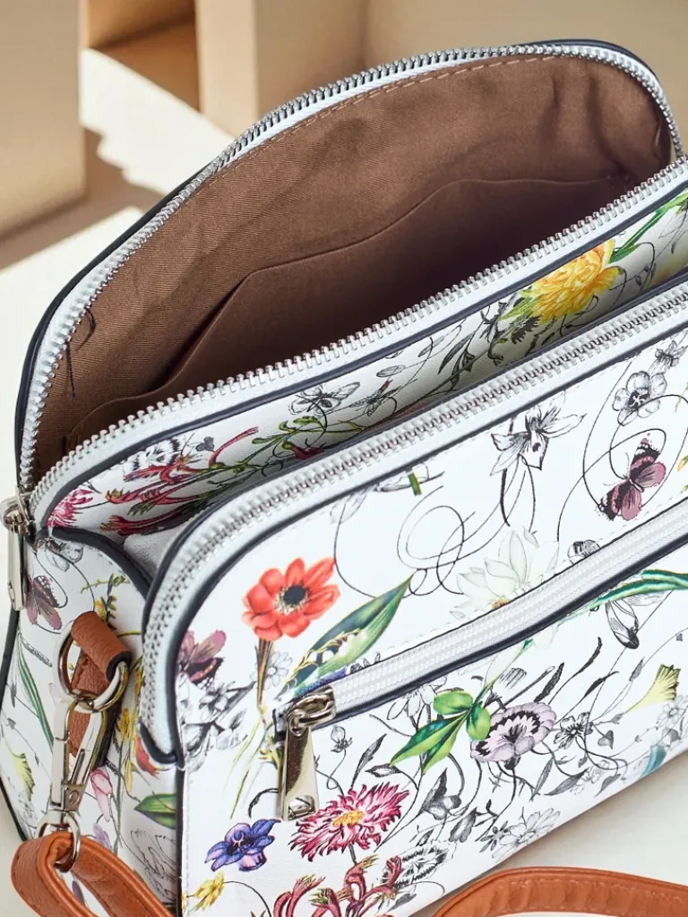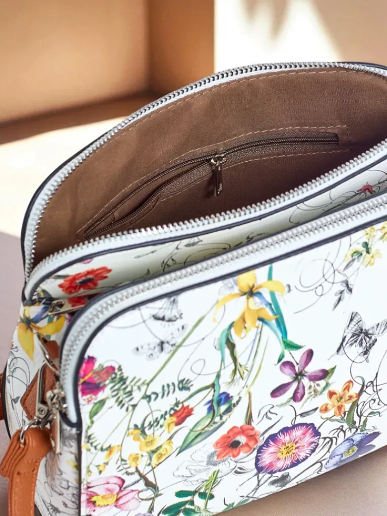 - Mała, okrągła torebka z eko skóry z trzema komorami i dodatkowymi kieszonkami – idealna na najpotrzebniejsze drobiazgi. Wyposażona w regulowany pasek, który zapewnia wygodę noszenia. Stylowa, praktyczna i idealna do codziennych stylizacji.