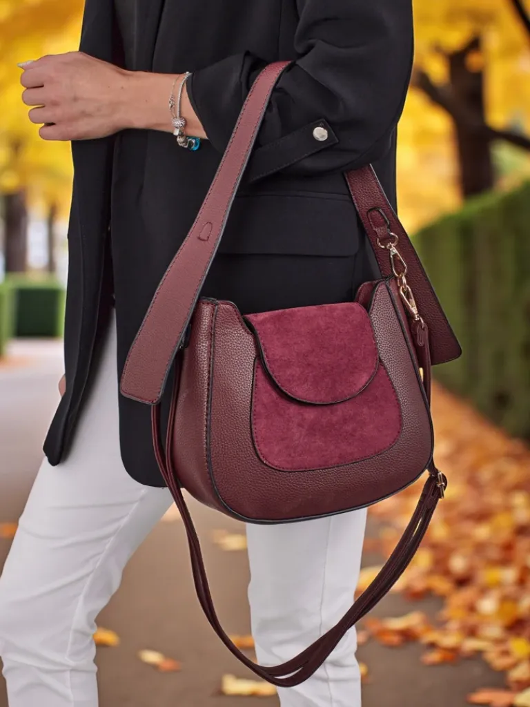 - Mała torebka z eko skóry i eko zamszowej wstawki. 1 komora, regulowany pasek zapewniają wygodę i styl. Idealna na wyjścia – kompaktowa forma, która przyciąga wzrok.