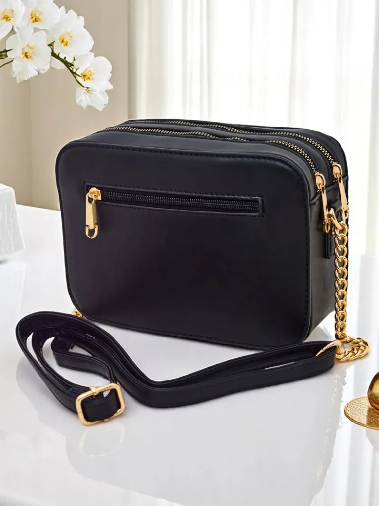 - Kompaktowa torebka z eko skóry z subtelnym tłoczeniem. Dwie komory i regulowany pasek łączą styl i funkcjonalność – idealna na co dzień i wieczorne wyjścia.