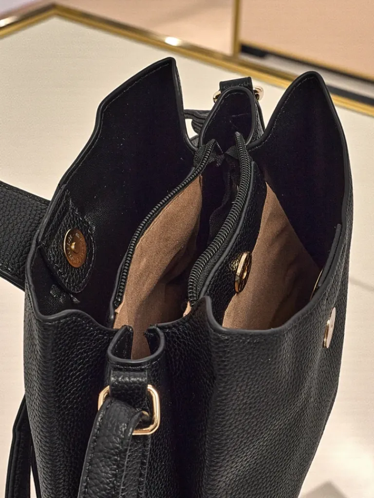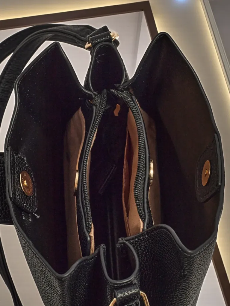 - Mała torebka wykonana z połączenia eko skóry. 1 komora, 3 kieszonki, zamek oraz regulowany pasek. Styl i funkcjonalność w perfekcyjnym wydaniu.