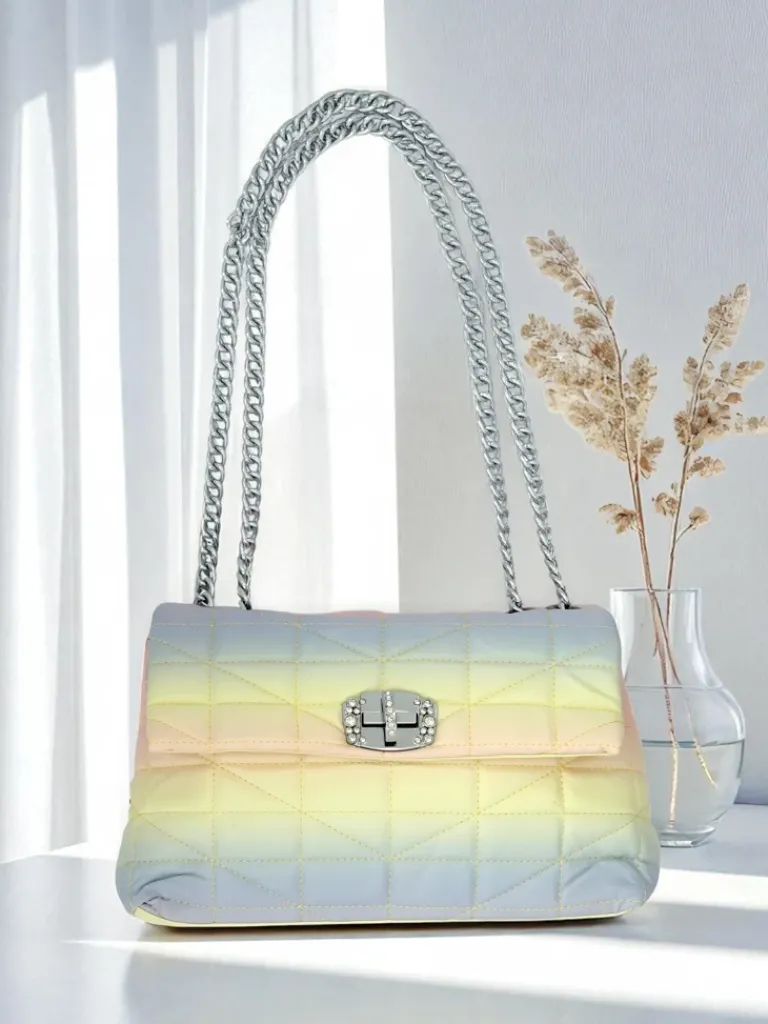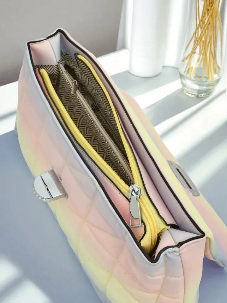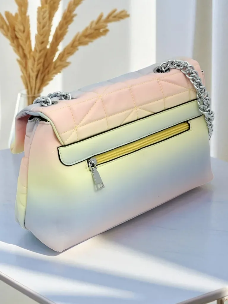 - Elegancka kopertowa torebka z eko skóry z efektem ombre. Zamykana na zamek i zatrzask. Metalowy łańcuszek zamiast paska dodaje szyku. 1 komora idealna na najważniejsze rzeczy na wieczór i specjalne okazje.