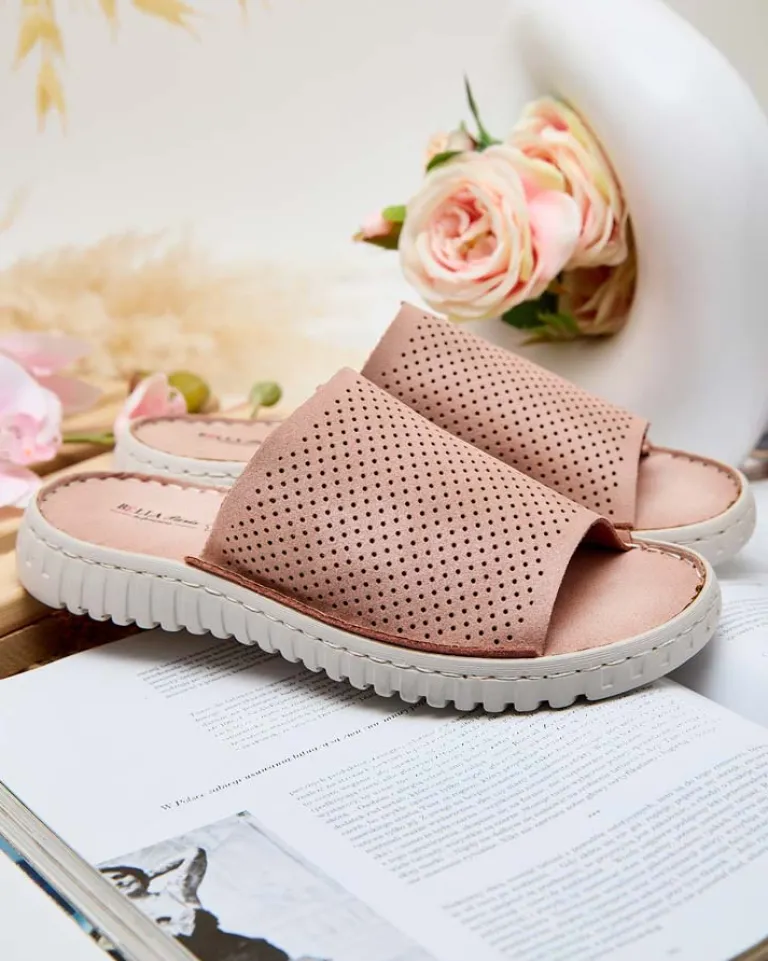 - Świetne damskie ażurowe klapki na płaskiej podeszwie. Niesamowity komfort zapewni im skóra naturalna, z której są wykonane. Idealny wybór na wakacje!