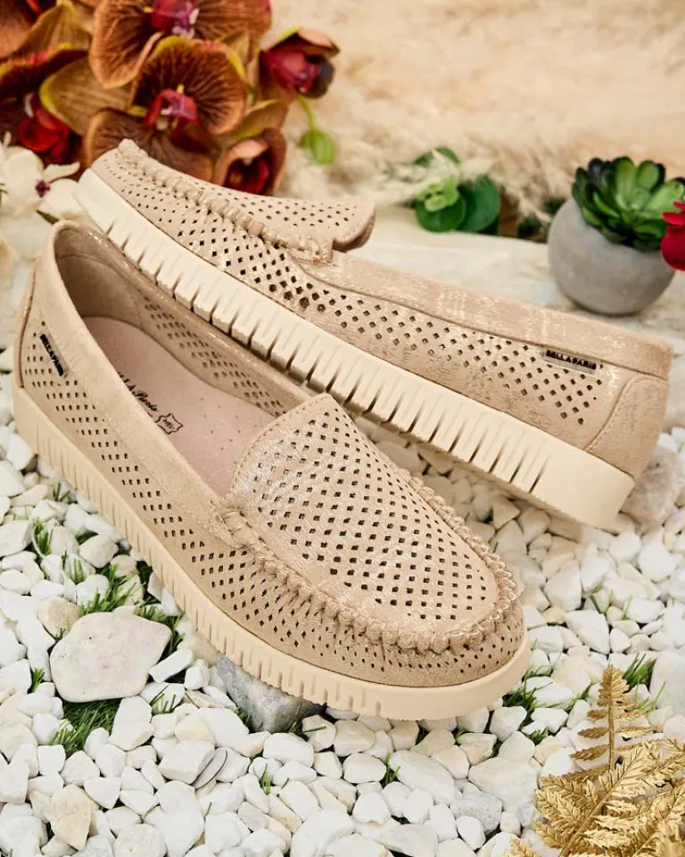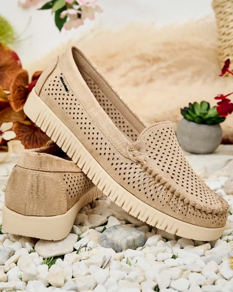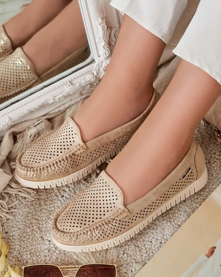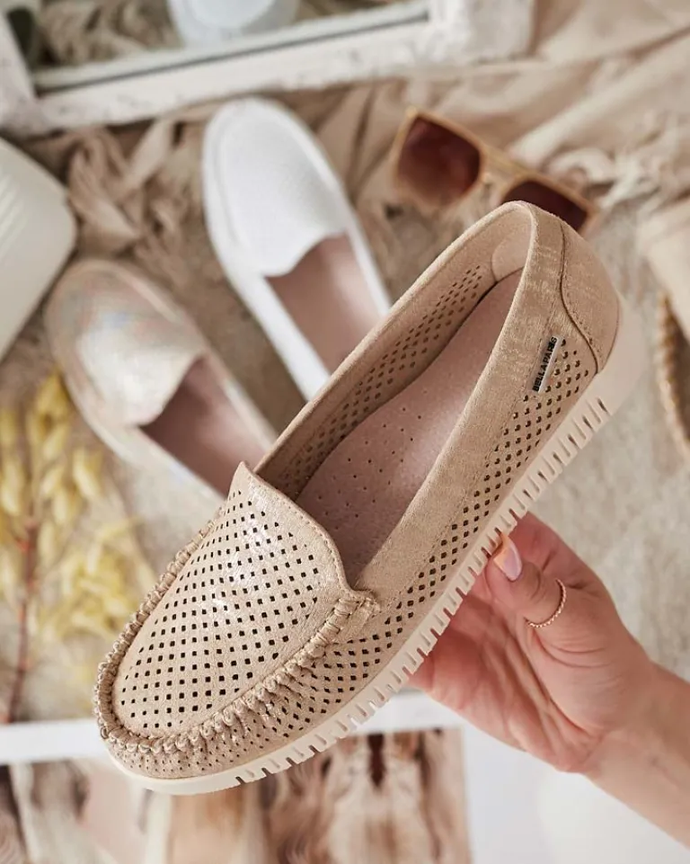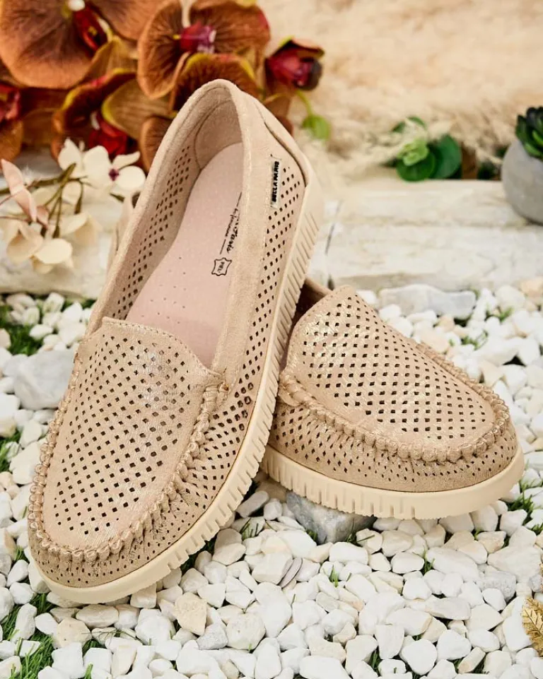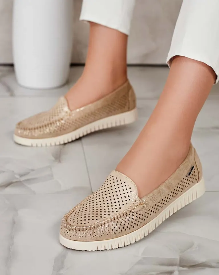 - Skórzane damskie mokasyny na płaskiej podeszwie. Model jest wykonany ze skóry ekologicznej. W środku wkładka ze skóry naturalnej. Idealna baza na co dzień!