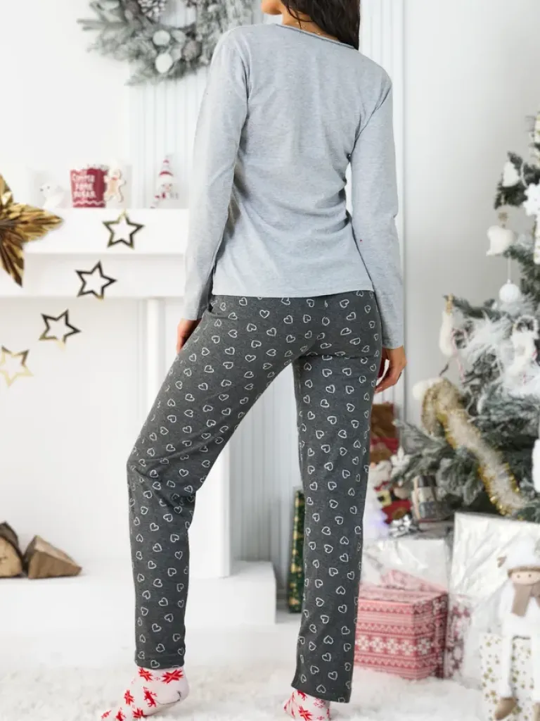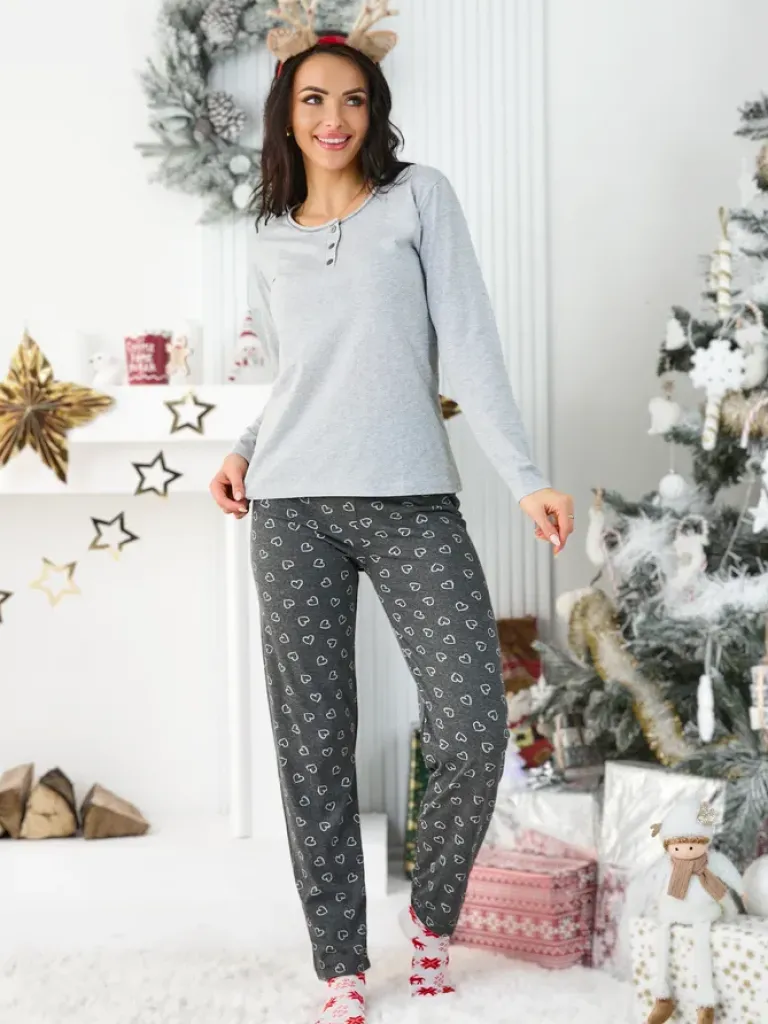 - Piżama damska 2-częściowa z długim rękawem i długimi nogawkami, wykonana z materiału bawełnianego. Model zdobiony printem. Idealna na domowe wieczory! UWAGA: Dokładność pomiaru (+/-) 1 cm.