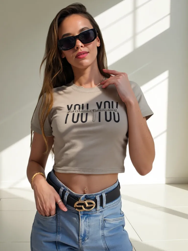 New Bawełniany damski crop top z napisem Bluzki / Koszule / Koszulki
