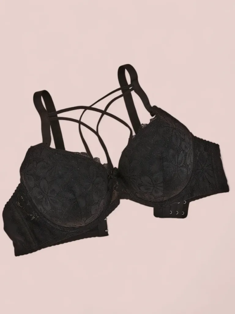- Elegancki damski biustonosz usztywniany, wykonany z przyjemnego miękkiego materiału. Model posiada ozdobną koronkę oraz odpinane i regulowane ramiączka, a z tyłu zapięcie na haftki. UWAGA: dokładność pomiaru (+/-) 1 cm.