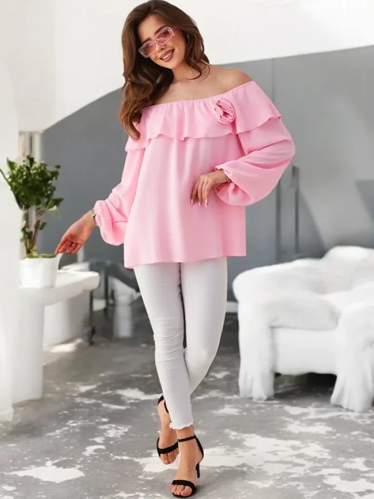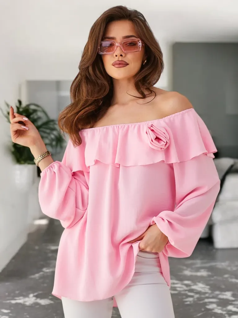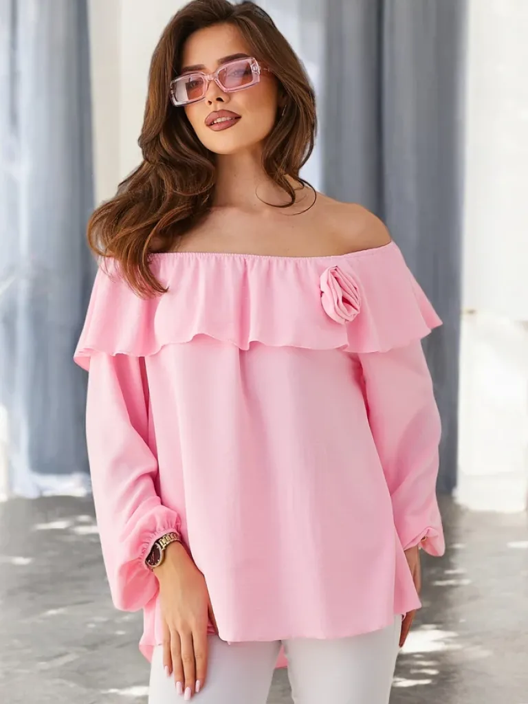 New Bluzka damska a’la hiszpanka z falbanką i kwiatem Bluzki / Koszule / Koszulki
