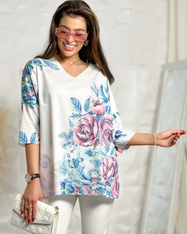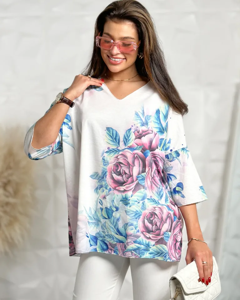 - Wzorzysta bluzka damska wykonana z miękkiego materiału. Dekolt w serek dodaje wyrafinowanego akcentu. Idealna na co dzień!