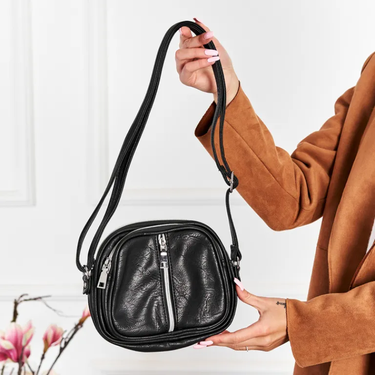 - Mała damska torebka na ramię, wykonana ze skóry ekologicznej i zapinana na suwaki.