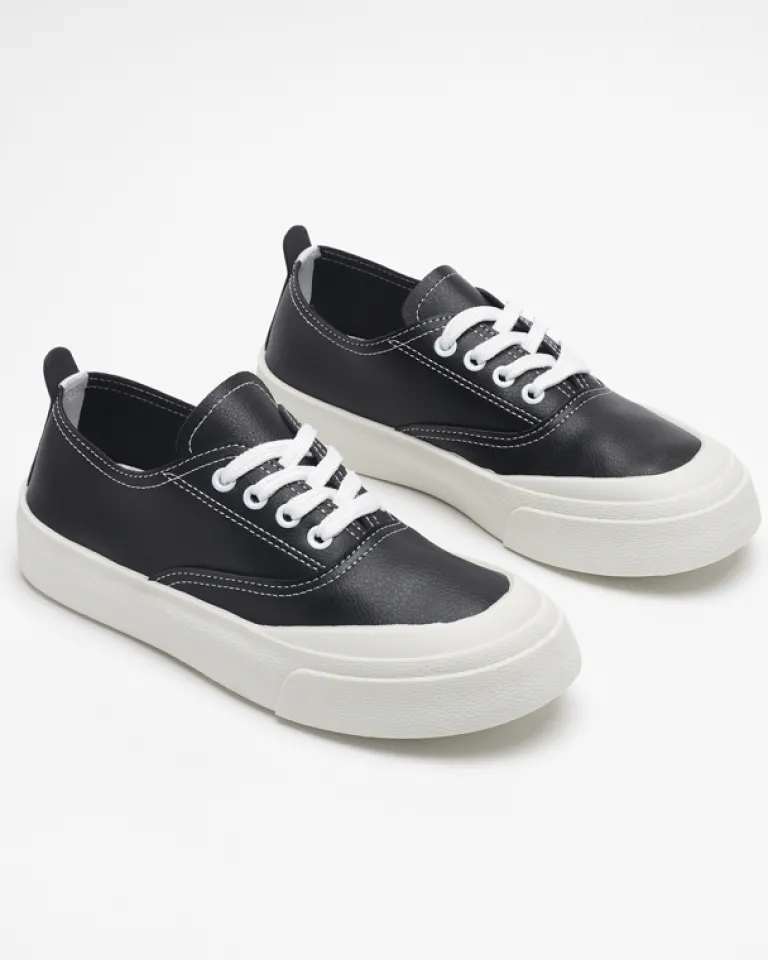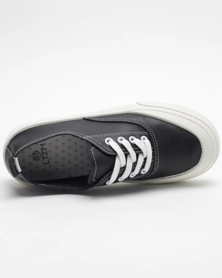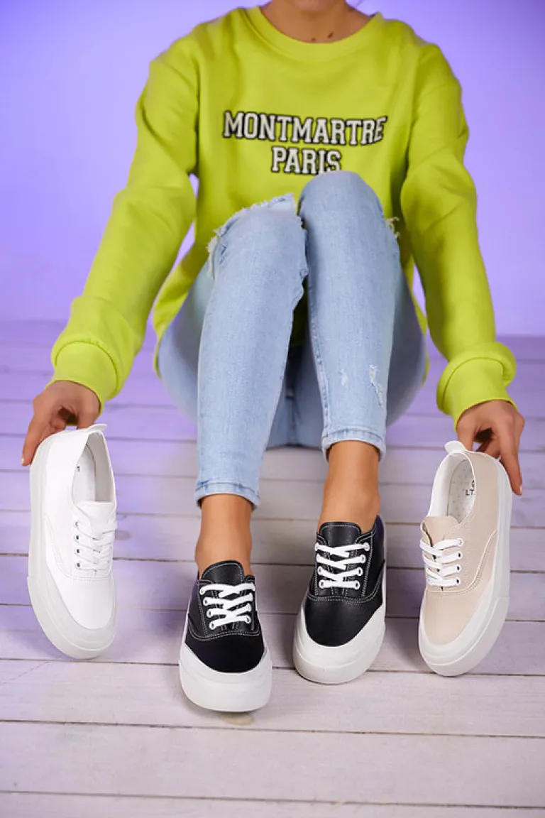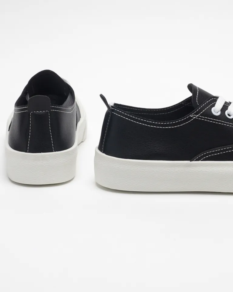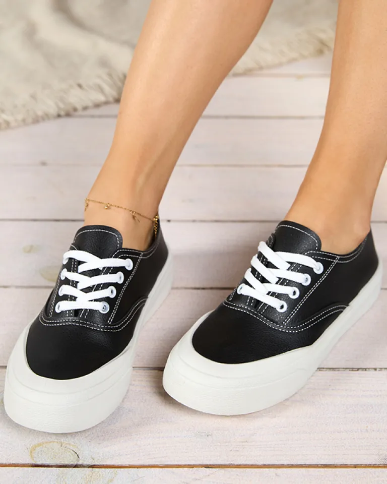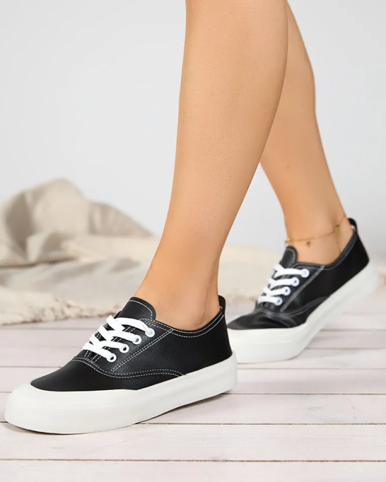 - Zgrabne damskie tenisówki wykonane ze skóry ekologicznej. Model sznurowany i z tkaninową wkładką. Super dodatek do Twoich casualowych outfitów!