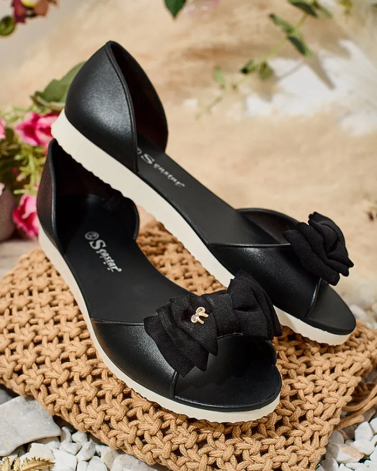 - Wyjątkowe baleriny wykonane z materiału gumowego z odkrytym noskiem. Miękka podeszwa dostarczy komfortu na każdym kroku. Idealnie się sprawdzą do eleganckich i modnych stylizacji!