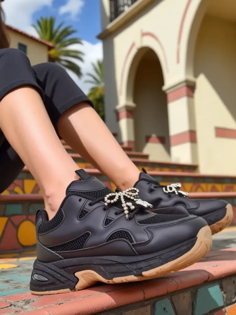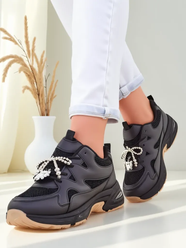 - Damskie buty sportowe wykonane ze skóry ekologicznej i siateczki. Model na grubszej podeszwie. Cholewka sznurowana. Będą świetnie pasowały do codziennych stylizacji! Zdobione zdejmowanym łańcuszkiem.