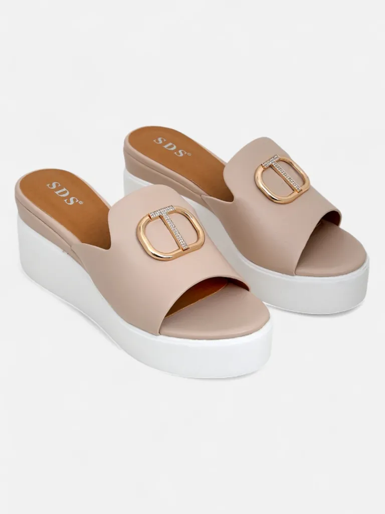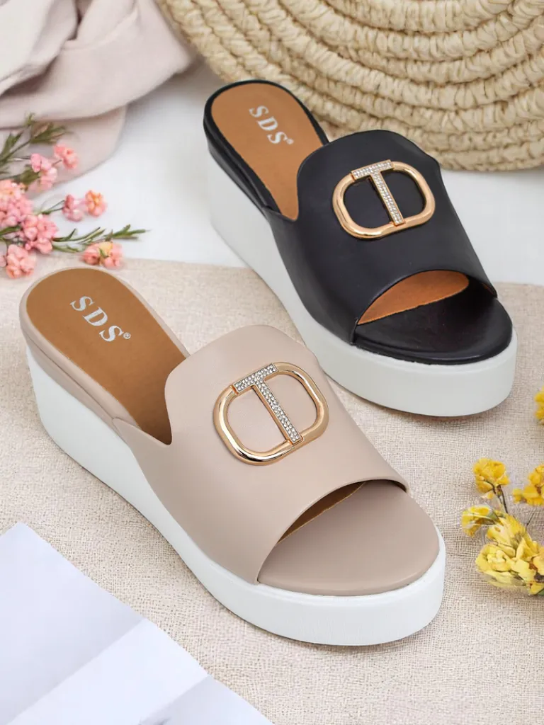 - Klapki damskie wykonane ze skóry ekologicznej i eko skórzanej wkładki. Wysoki koturn, platforma i ozdobna klamerka dodaje uroku i charakteru. Ciesz się wygodą i stylem zabierając te obuwie na wakacje!