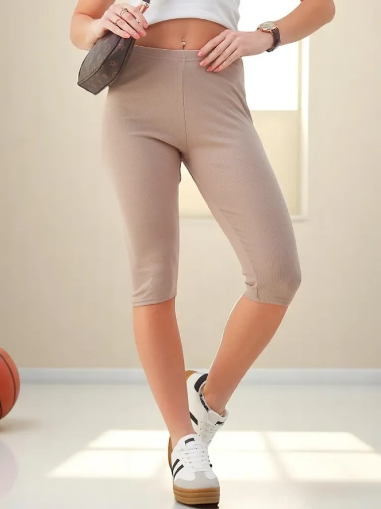 - Damskie legginsy wykonane z lekkiego materiału tkaninowego prążkowanego. Model posiada szeroką i elastyczną gumę w pasie. Idealne na aktywny czas! UWAGA: Dokładność pomiaru (+/-) 1 cm.