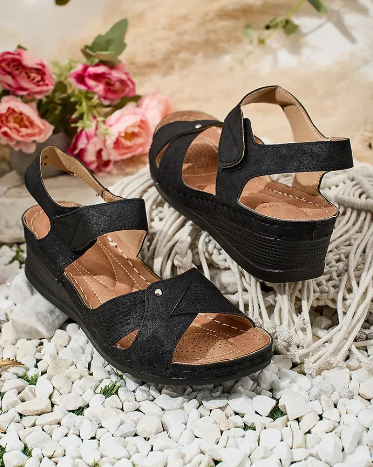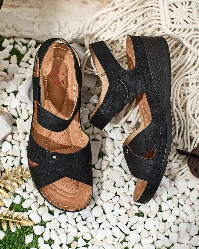 - Damskie sandałki na niskim koturnie. Wykonane są ze skóry ekologicznej, wkładka to eko skóra. Obuwie zapinane na rzepy. Doskonałe do tworzenia modnych letnich outfitów!