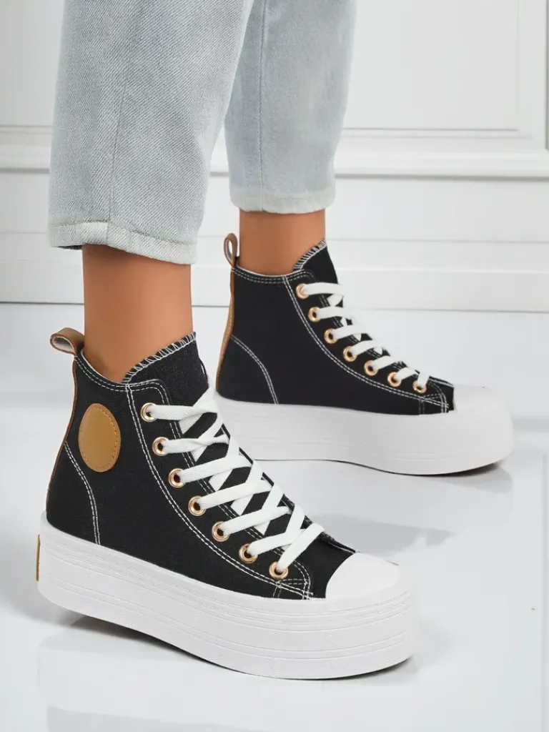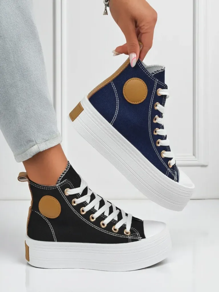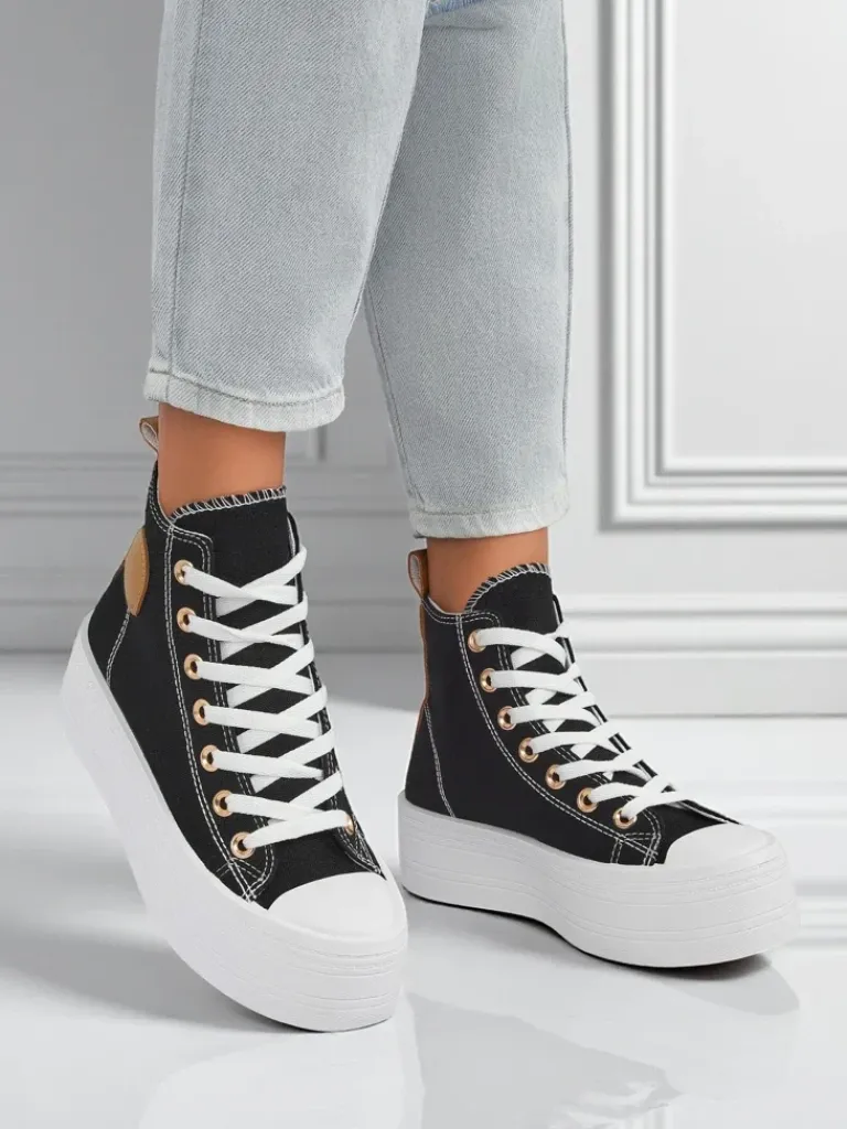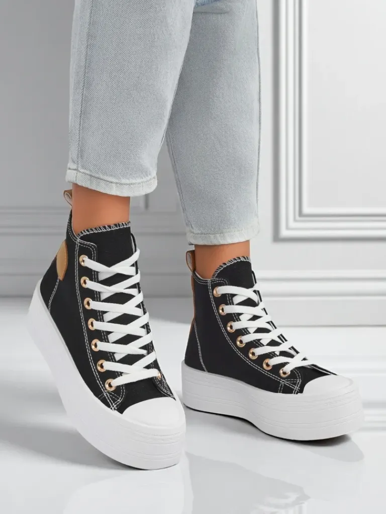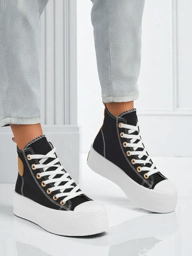 - Modne trampki z tkaniny na grubszej podeszwie. Wygodne, lekkie i stylowe – idealne do miejskich stylizacji i codziennego noszenia. Komfort i trend w jednym kroku.
