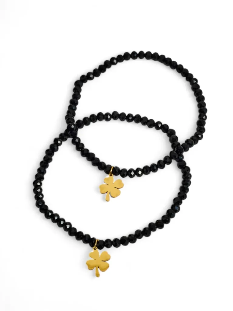 - Bransoletka z koralikami i zawieszką koniczynki to stylowy talizman szczęścia. Delikatna i elegancka, symbolizuje pomyślność, nadzieję i pozytywną energię. Idealna na co dzień, jako subtelny dodatek z wyjątkowym przesłaniem.