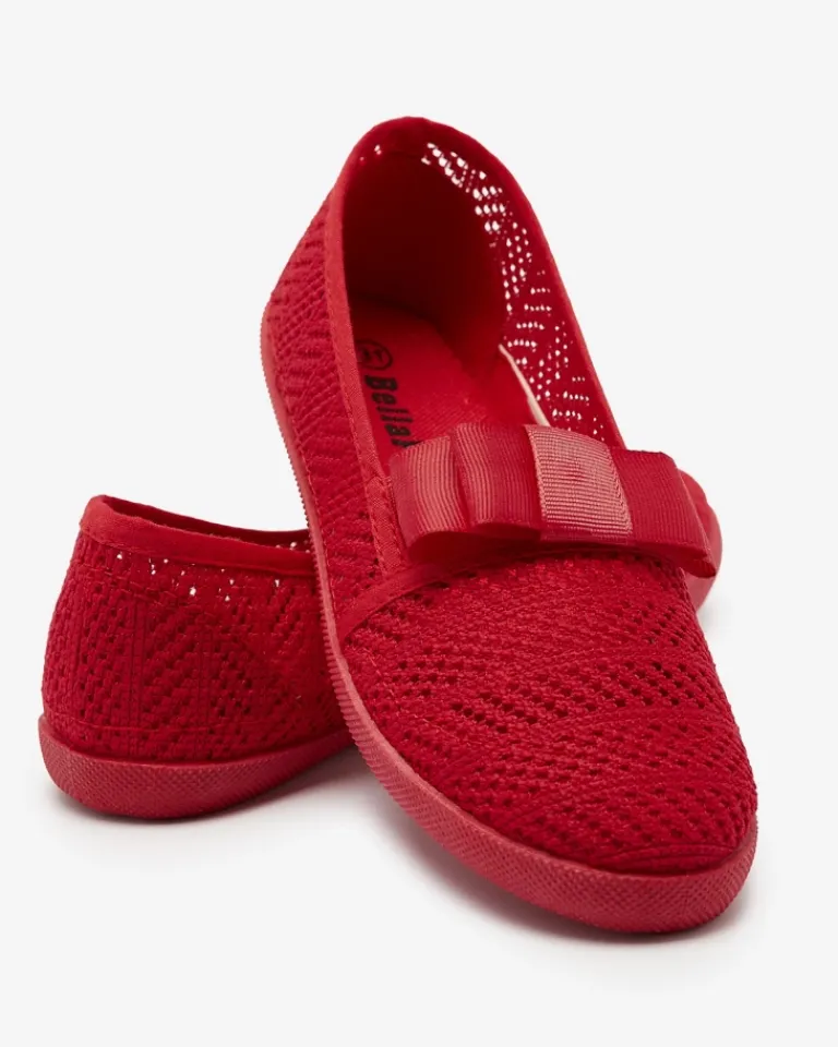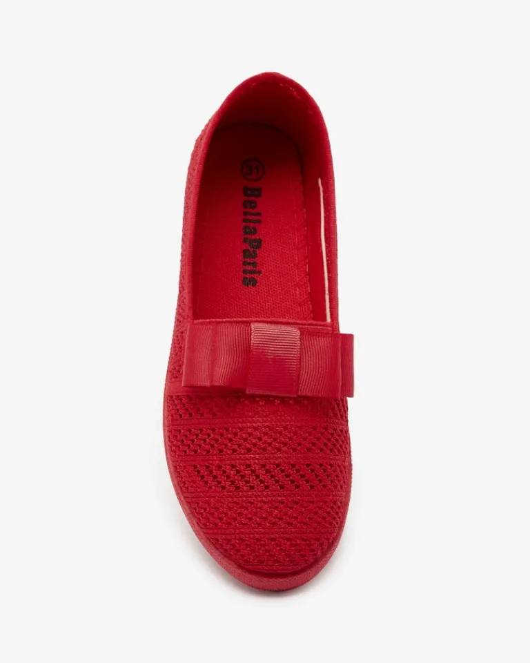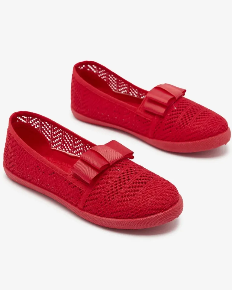 - Przepiękne dziewczęce tenisówki typu slip on. Cholewka wykonana jest z ażurowego materiału tkaninowego, wkładka to również tkanina. Para jest zdobiona uroczą kokardką z przodu. Dodatkowo obuwie posiada gumową wstawkę ułatwiającą wsuwanie stopy do buta.