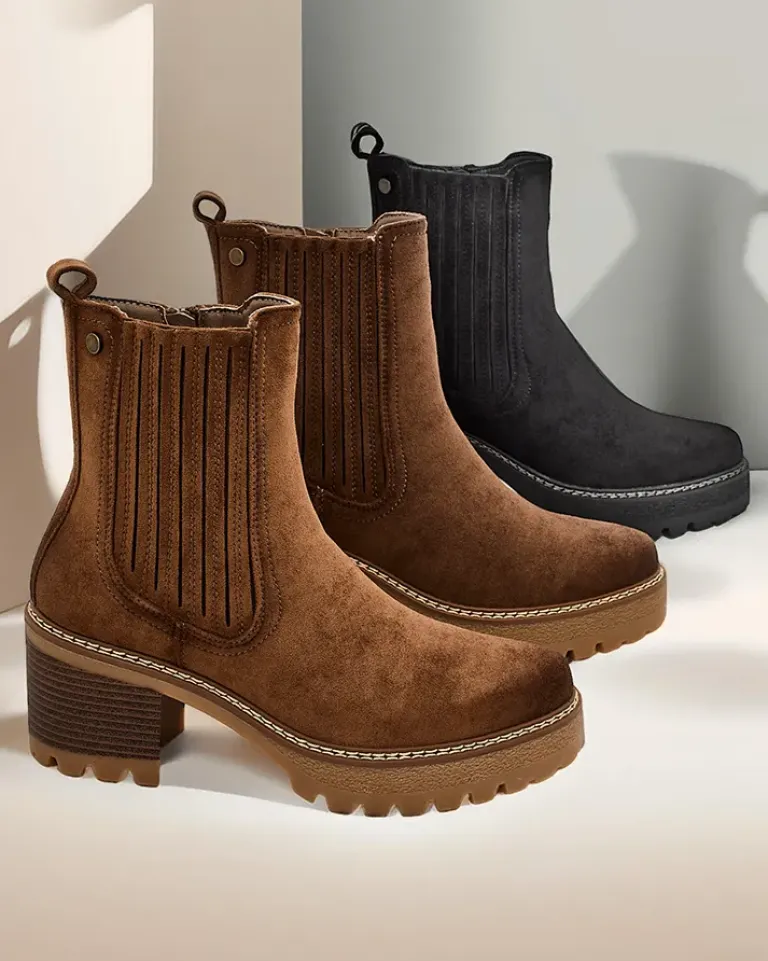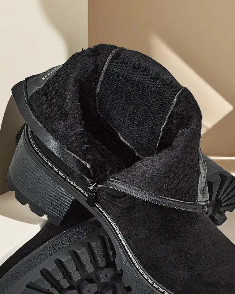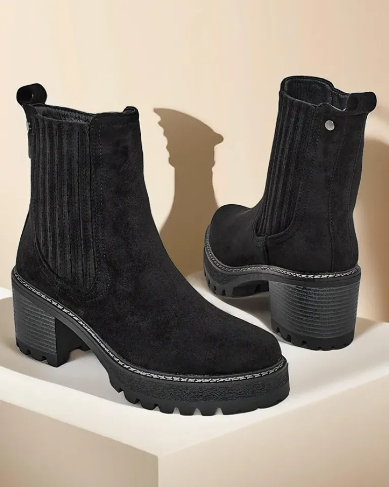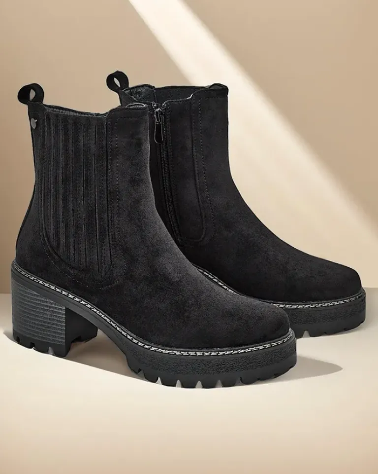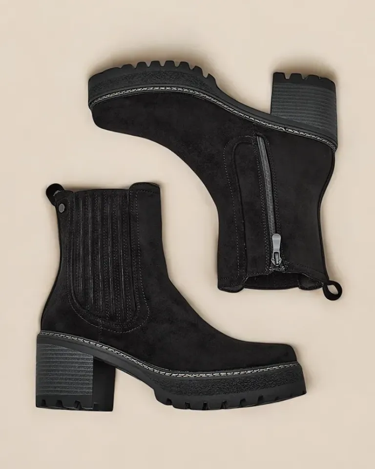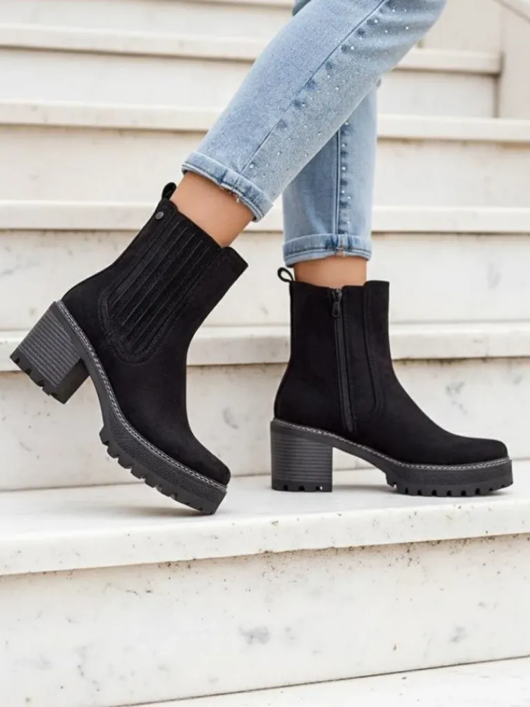 - Stylowe damskie botki to idealne rozwiązanie na chłodniejsze dni. Eko zamszowa cholewka jest zapinana na suwak, a w środku znajduje się futerko. Model na słupku i z okrągłym noskiem. Super dodatek do Twoich casualowych outfitów!