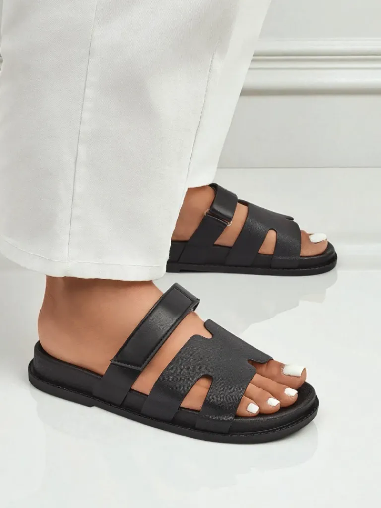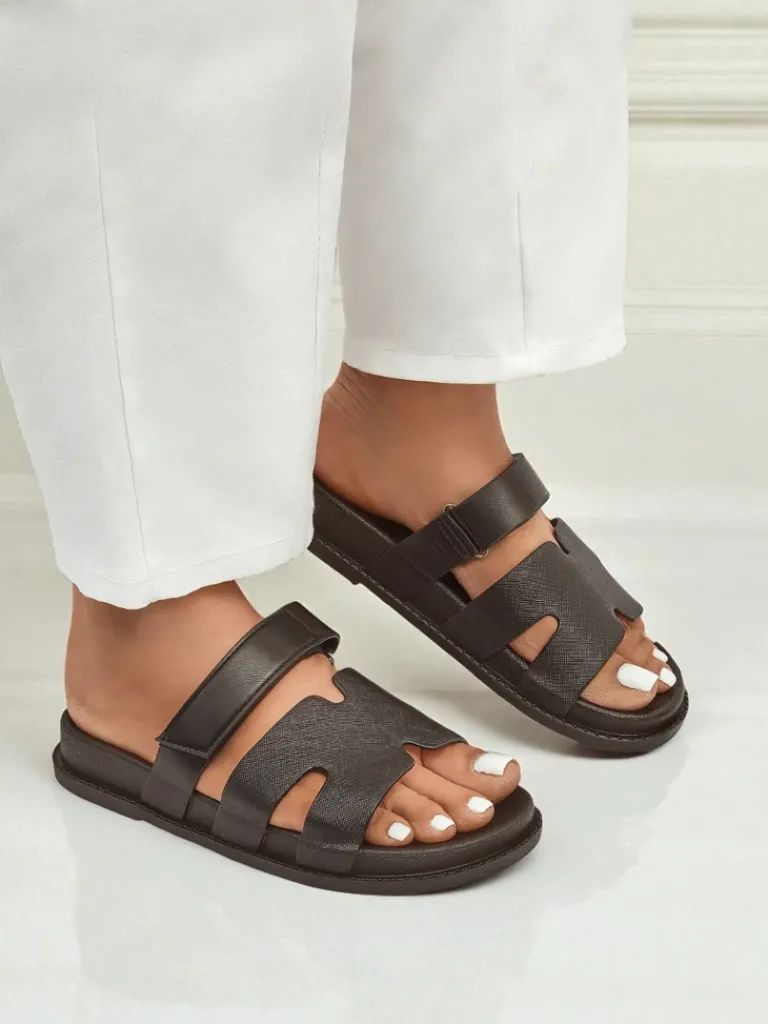 - Eko skórzane klapki FlexiComfi z regulacją na rzep zapewniają idealne dopasowanie i wygodę na co dzień. Lekkie, praktyczne i stylowe – doskonałe do letnich stylizacji i codziennego użytku.