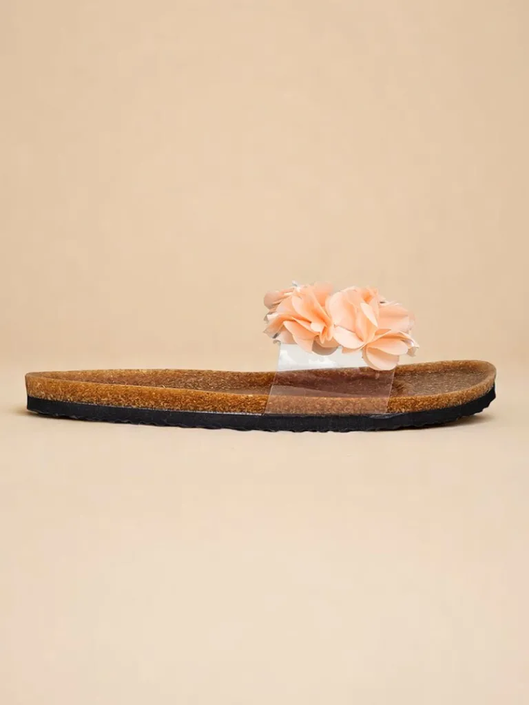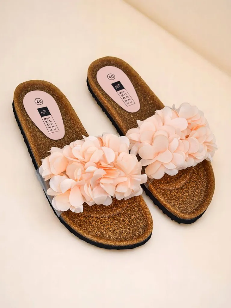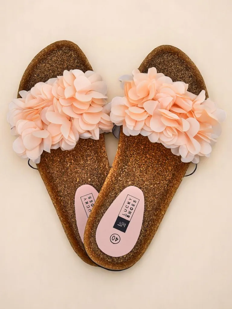 - Urocze klapki z płaską, gumową podeszwą i ozdobnymi kwiatuszkami na paseczku. Idealne na lato – lekkie, wygodne i kobiece. Dodadzą uroku każdej stylizacji.