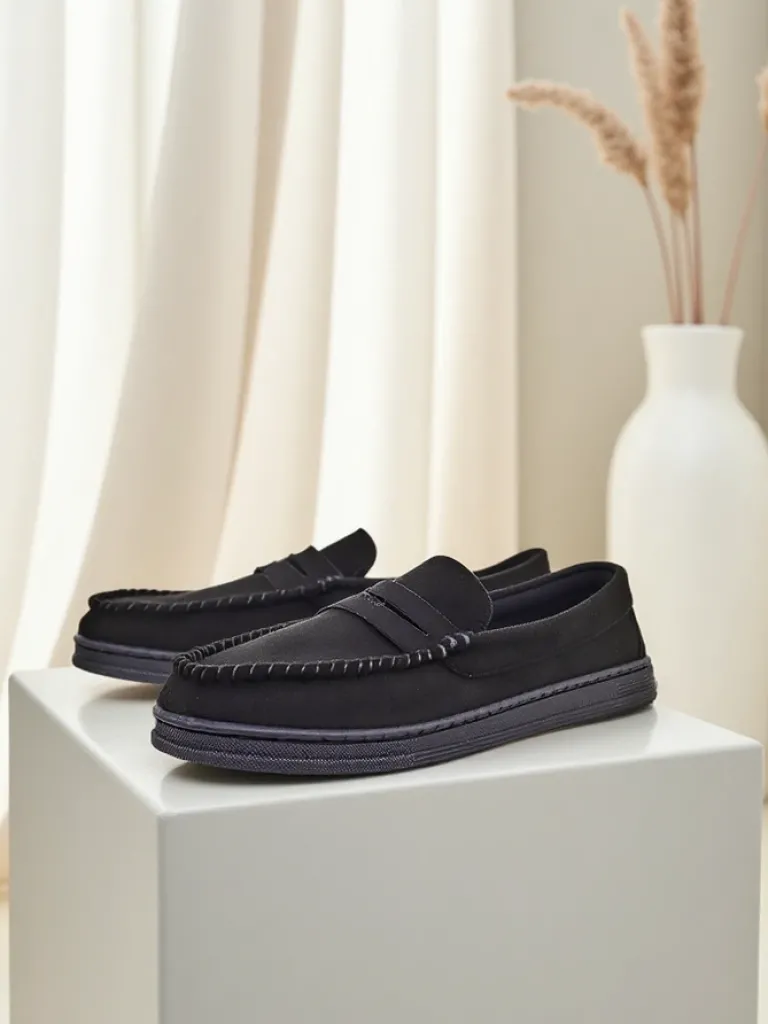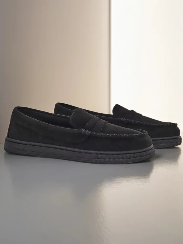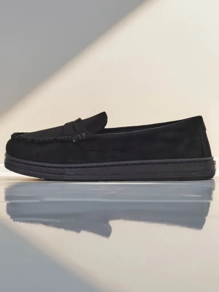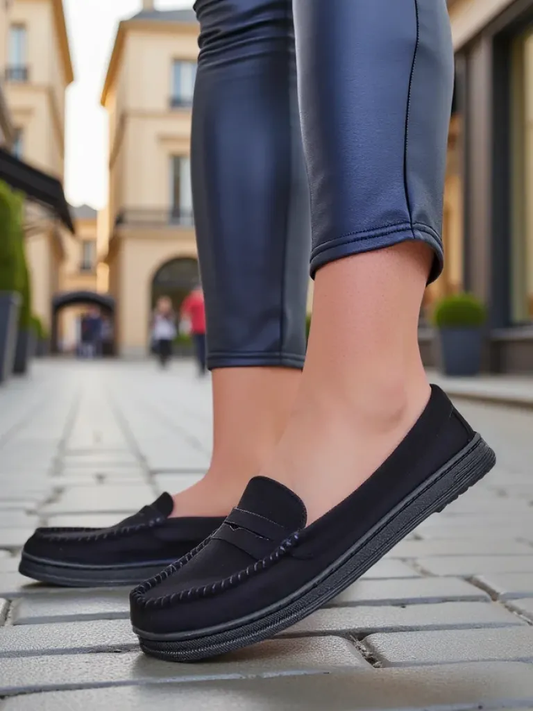 - Modne damskie mokasyny na płaskiej podeszwie. Para jest wykonana ze skóry ekologicznej zamszowej. Środek wyłożony miękką tkaniną. Idealne do casualowych outfitów!