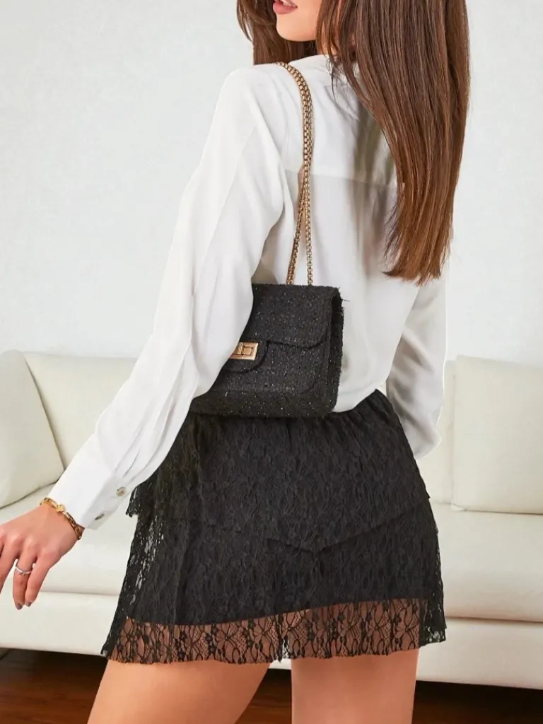 - Niesamowita spódniczka o długości mini, wykonana z lekkiej tkaniny. Model o rozkloszowanym kroju, posiada gumę w pasie i jest zdobiony wartwą z koronki. UWAGA: Dokładność pomiaru (+/-) 1 cm.